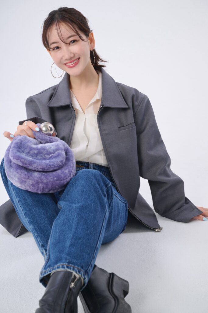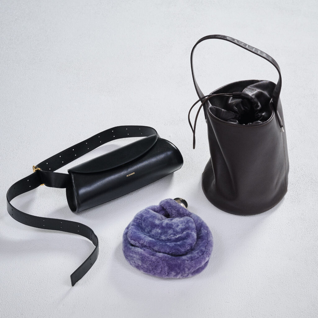 「ジルサンダーはトレンドに左右されず長く使える、大好きなブランド。洗練されたモードなデザインは、オンオフ問わず活躍します。特にバッグは、ロゴの主張が控えめでコーデに馴染みやすく、少しずつ集めています。定番のカンノーロは、自転車で出かけるときに便利で、黒×ゴールドの組合せが可愛く、一目惚れで購入。差し色として使うスフィア クラッチ ポーチは、モノトーンコーデに映えるパープル。セールで手に入れたものですが、使い勝手も抜群です。オフィス用には荷物がたっぷり入るブラウンのバケットバッグをチョイス。用途に合わせて使い分けていて、どのバッグもさりげなくコーデを格上げしてくれる頼れる存在です」