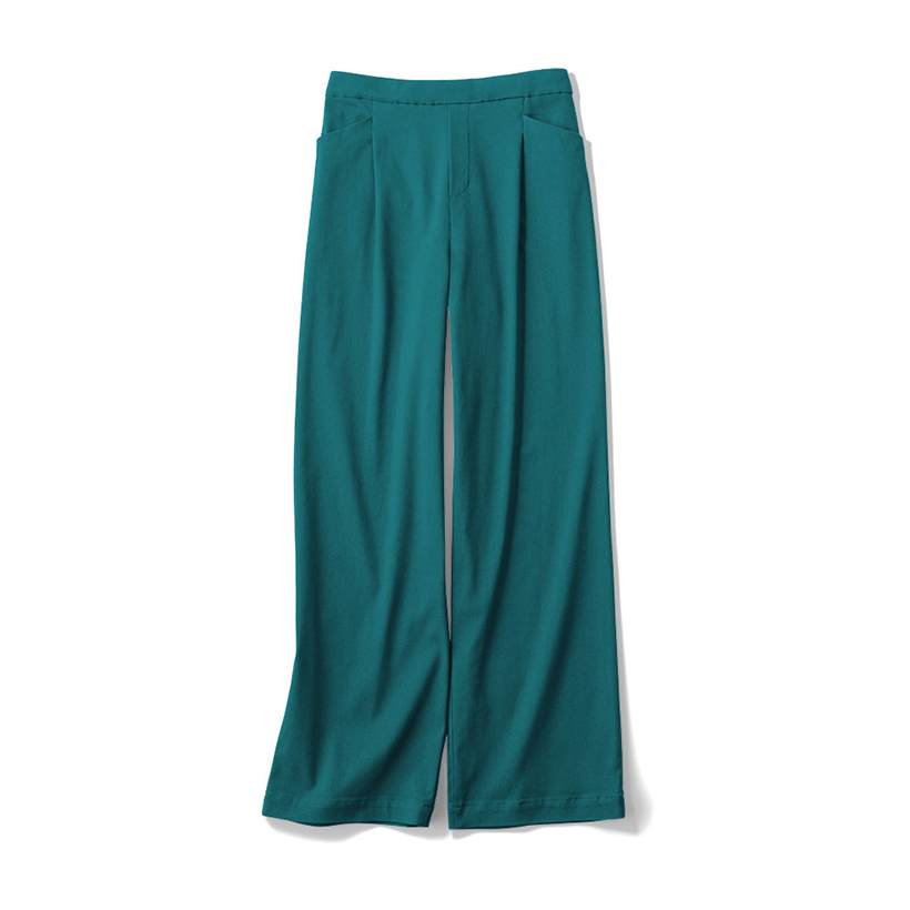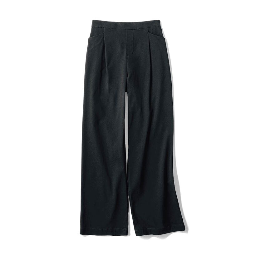 ツータックが施されていることにより、気になる太もも回りもすっきりカバー。細いストライプ柄で、きちんと見せたいシーンにも大活躍。旬なシアーカットソーのレイヤードで、フレッシュな着こなしに。サイズは座(THE)ワイドパンツ同様S〜6Lの8サイズ、股下は62cm・66cm・70cmの3レングスで展開。