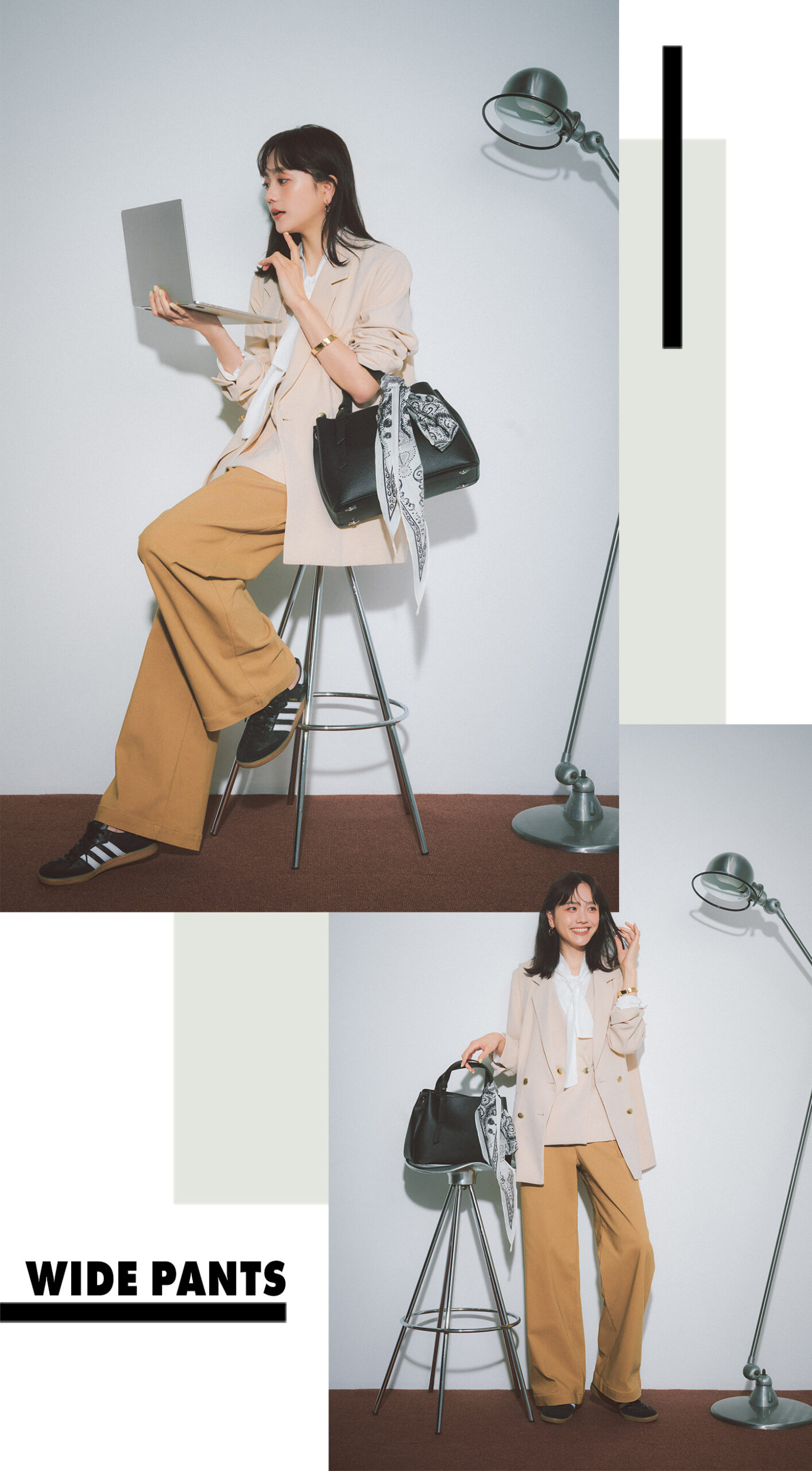 座(THE)ワイドパンツ¥3,990~¥4,490ジレ¥5,990ジャケット¥6,990バッグ¥7,990ブラウス¥2,990〜¥3,490(すべてベルメゾン)その他スタイリスト私物