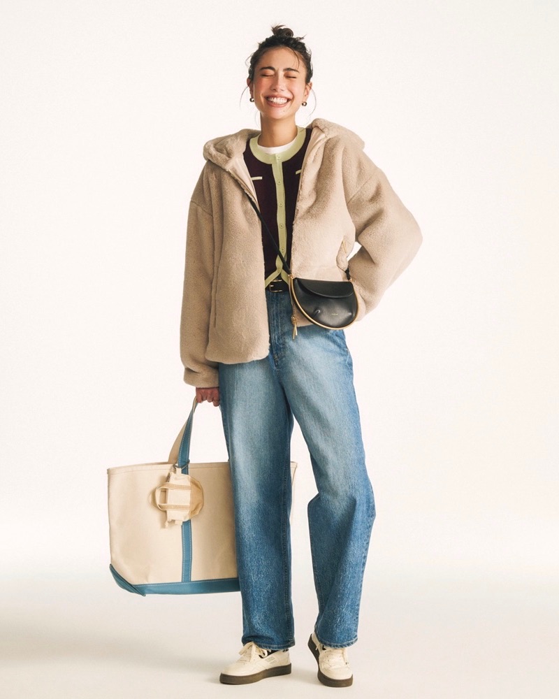 3月1日(日)、たくさん動く日は、楽ちんなデニムスタイルが頼りに。ストレートシルエットならボリュームトップスとも好相性で、バランスよくまとまります。もこもこ素材のアウターも、ベージュを選べばぐっとやわらかな印象に。インナーにはきれいめカーディガンを仕込んで、カジュアルをほんのり中和して。気負わないのにどこか上品。そんな余裕のあるコーデです。