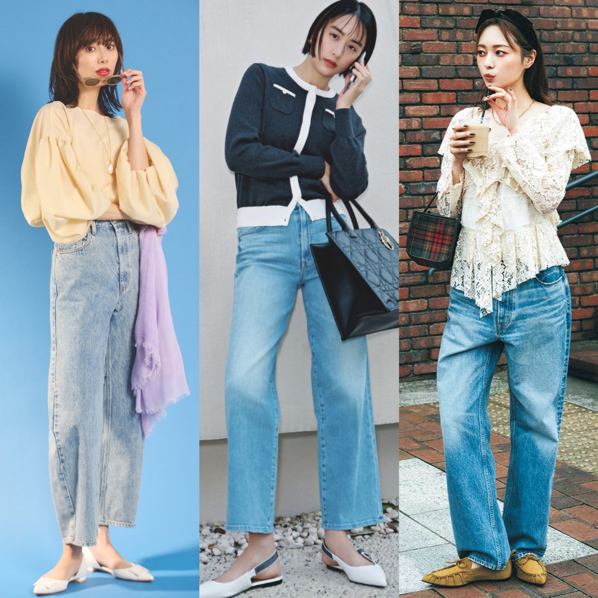 ワイドデニムは、タック入りやカーヴィ、長めレングスなど“今どきシルエット”を選ぶだけで、いつものコーデが鮮度よく仕上がるのが魅力。白シャツで爽やかに寄せたり、ピンクニットで春らしさを添えるなど、幅広いアレンジが楽しめます。明日の装いを少しだけ変えたいとき、頼れる存在になってくれるはず。