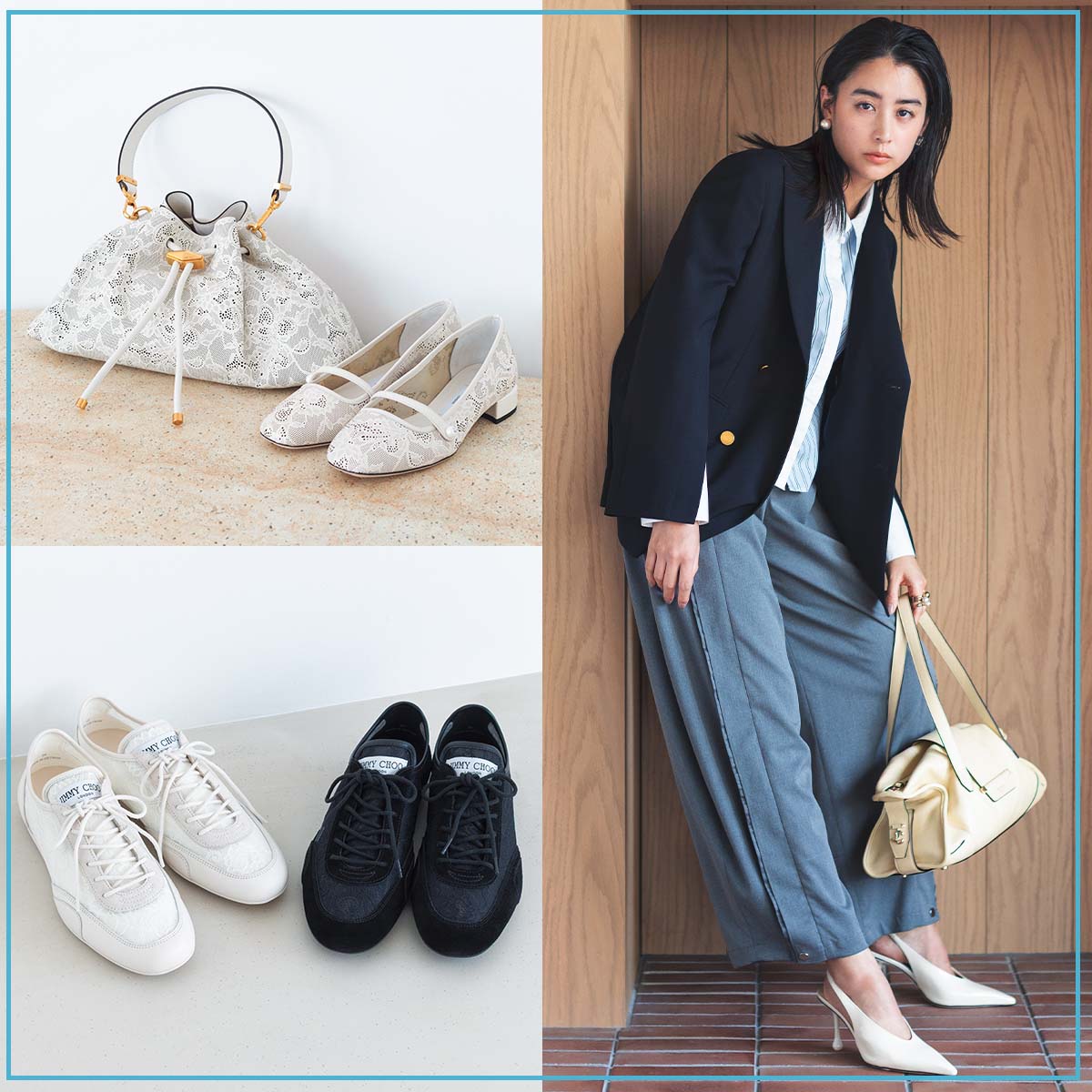 「足を入れた瞬間、しなやかに包み込み、ふかふかのフットベッドに支えられたアーチが軽やかな一歩を約束してくれる。楽ちんな足元に慣れた私を優しく受け止めてくれるパンプスは、さすがJIMMY CHOO。ラグジュアリーでありながら、日常を置き去りにしない――そんなブランドの考えに触れた気がしました。」