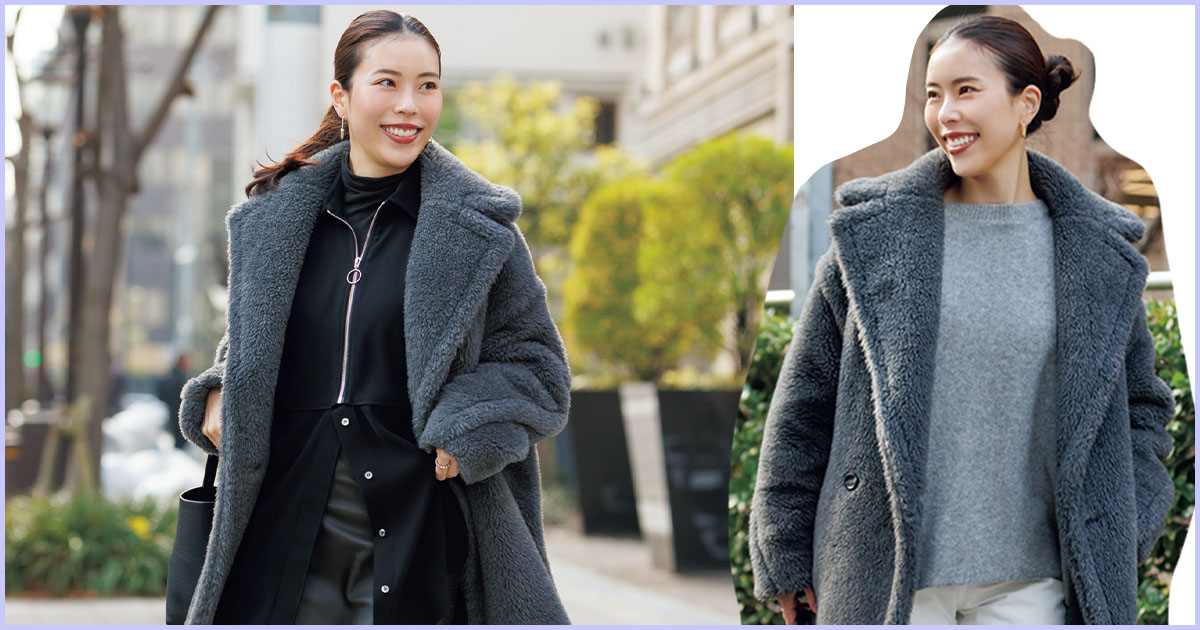 冬は防寒優先でコートがすべてのスタイルにもなりがちですが、北風が吹いても関西読者のファッションを楽しむ気持ちの灯は消えません!今回は、グレーの「テディ」の大人っぽい着こなしをご紹介します!