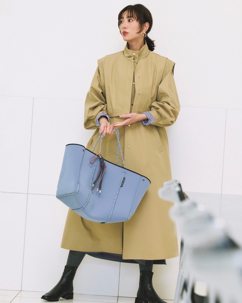 3月4日(水)、暖かさを感じたら、こんな春めいたカラーのコートに手を伸ばしてみて。トレンチ一択になりがちなこの時期のマンネリを、一気に刷新してくれる一枚です。袖口からストライプシャツを少しのぞかせれば、さりげないアクセントに。バッグもシャツとリンクするブルーで揃えれば、ぐっと春らしい差し色になります。季節の移ろいを楽しむ、大人の軽やかコーデです。