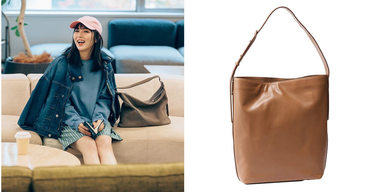 A4サイズが入るトレンドバッグの宝庫・J&M デヴィッドソンからもワンハンドルが登場。くたっと横長のスラウチーなシルエットが、平日のジャケットスタイルにこなれ感・休日のスウェットに大人っぽさを添えてくれる。