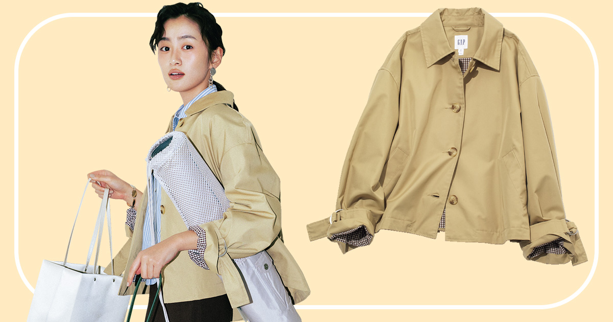 トレンド感のあるカジュアルなスタイリングを叶えてくれるGAPは、実はオフィスカジュアルにもひと役。今回は、ジャケット使いもできて“キレイ見え”に有効な「短丈トレンチ」の着こなしをご紹介します。通勤アウターとしても活躍すること間違いなし!