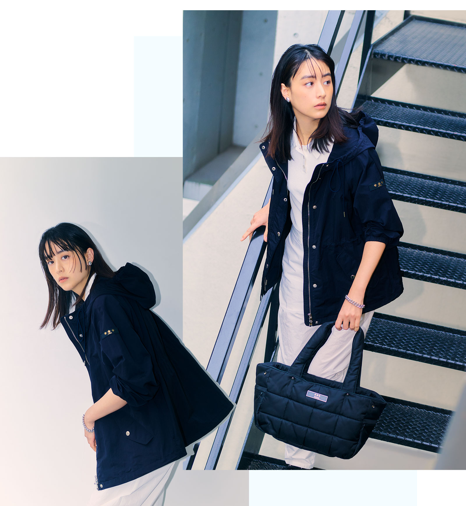 アクティブな休日はもちろん、毎日の通勤や出張といったお仕事シーンにまで幅広く活躍する、撥水効果のある高密度ナイロンタフタを採用した一枚。ウエストとフード部分にはドロストを配し、好きなバランスで着られるのも高ポイント。ブルゾン¥104,500ポロシャツ¥37,400パンツ¥41,800バッグ¥68,200(すべてタトラス/タトラス カスタマーセンター)イヤリング¥11,000ブレスレット¥11,000(ともにアビステ)