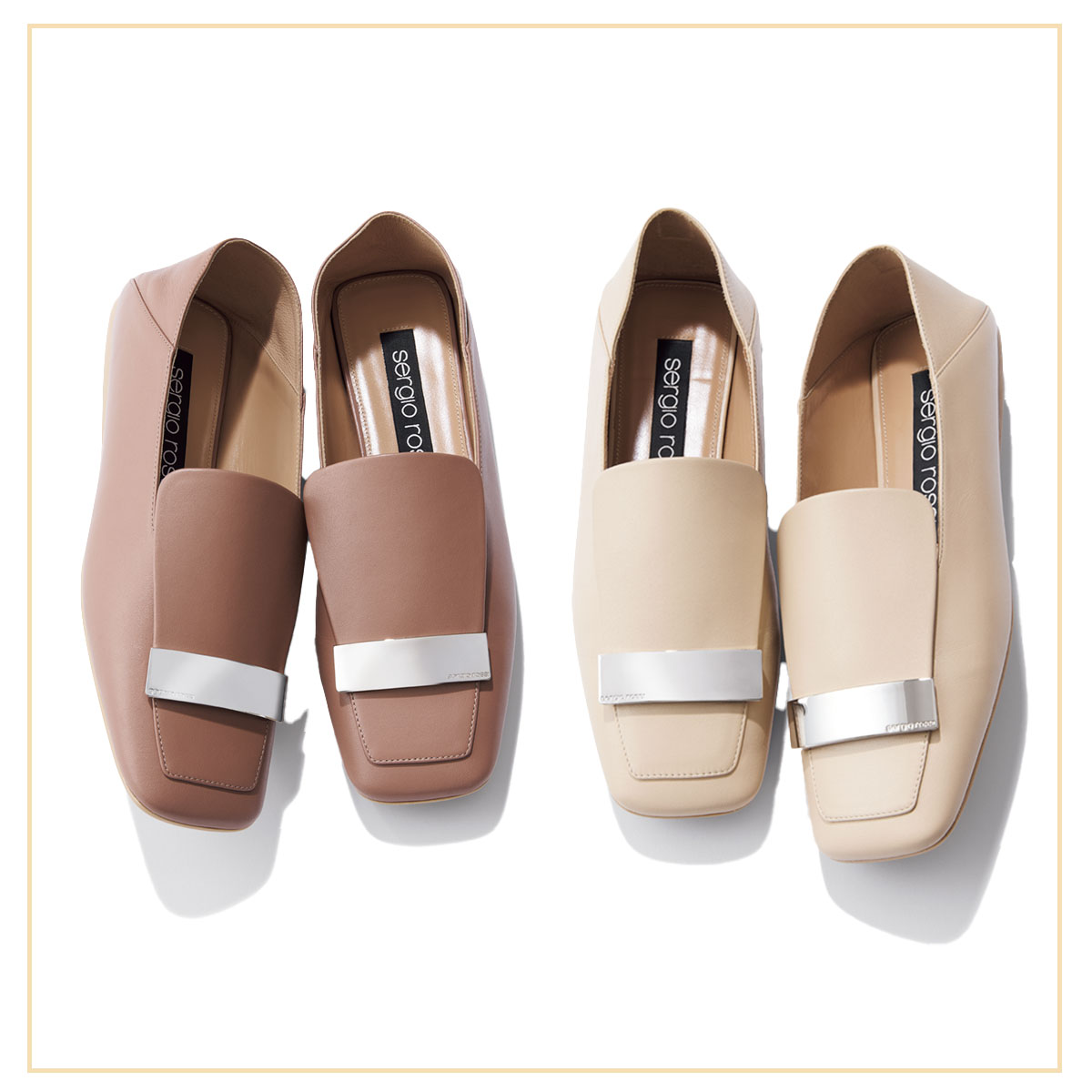 バレエ風ローファーでゴム入りの履き口が優しく足にフィット。靴〈H=1.2〉¥48,400(ビューティフル・シューズ╱オーセンティック・シュー&コー)