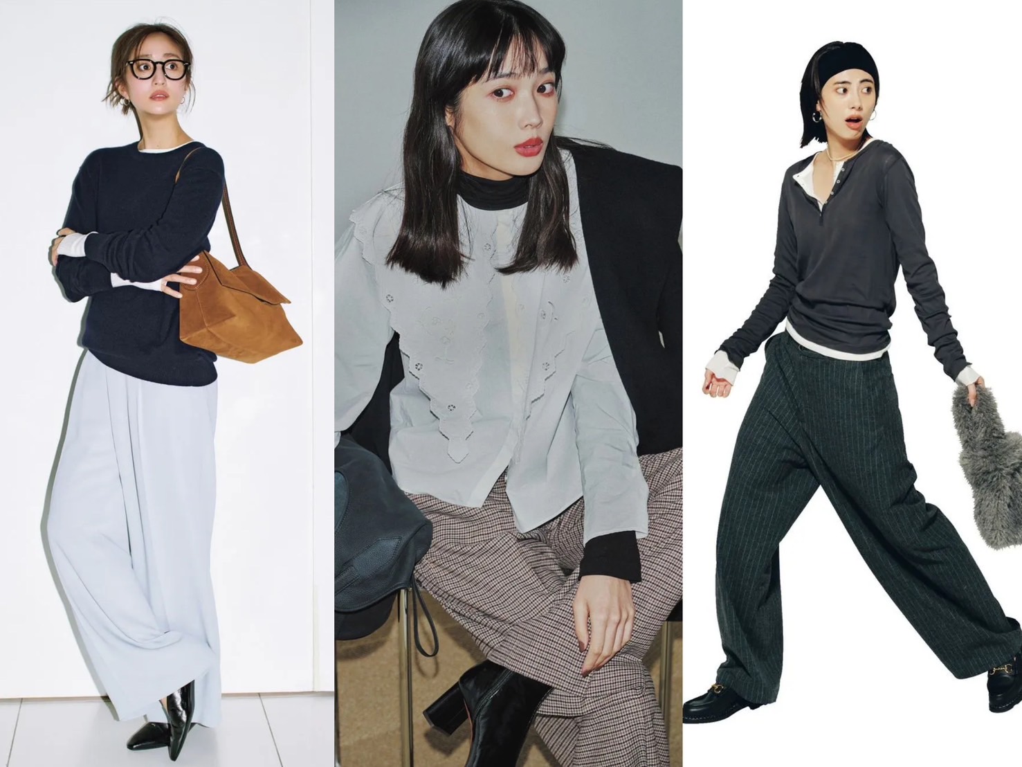 いかがでしたか?重ね着ように薄いタートルトップスやヘンリーネックがあるとバリエーションが増えそう。上半身をスッキリさせたら、定番のゆるパンツが女っぽく着られるのも魅力です。