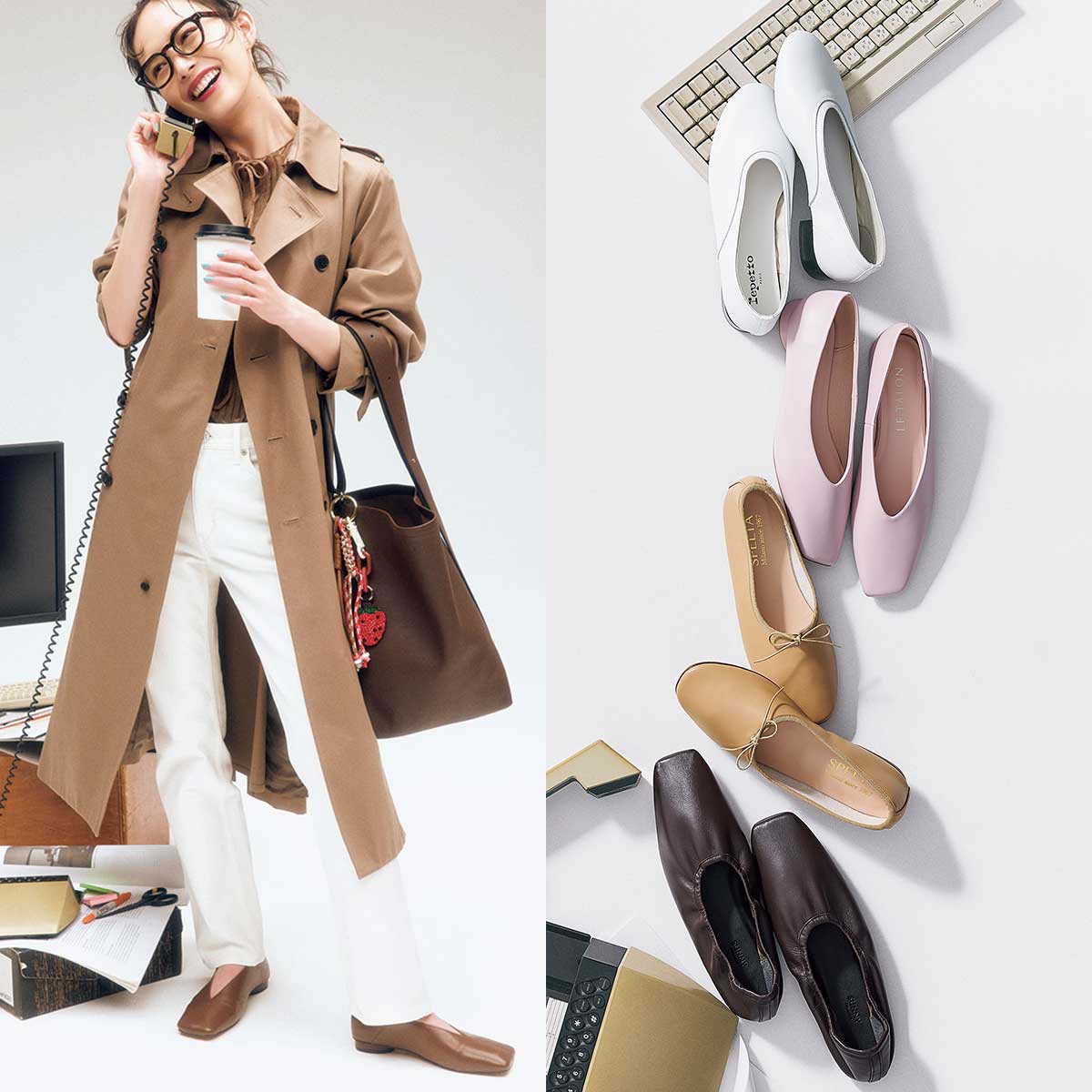 どことなく甘い印象の強いバレエシューズ、休日向き?と思い込んでいたらもったいない!今季、各ブランドから続々と登場しているほんのり辛口なバレエシューズならローファー&スニーカーに次ぐ仕事靴として適任!オフィスにも似合う「キレイめぺたんこ靴」9選をご紹介します!
