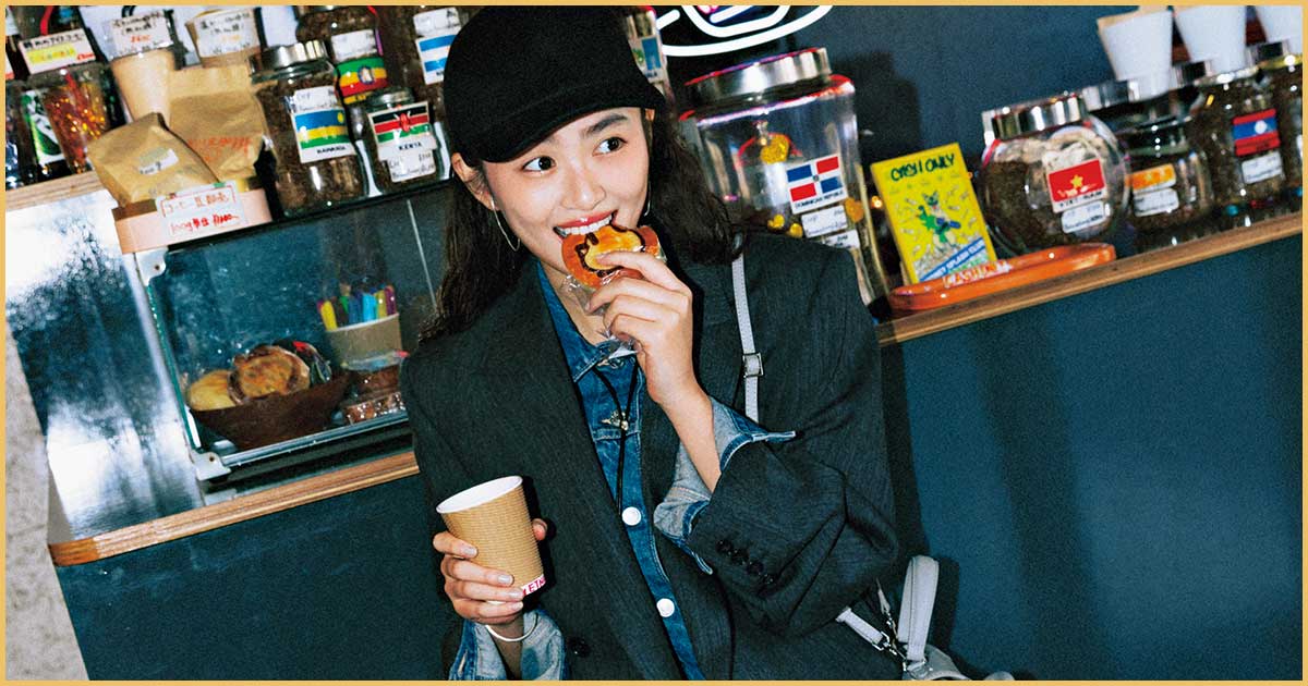 アライズ コーヒーパッタナーは自転車を購入したTOKYOBIKE TOKYOの一角にあるアライズコーヒーの分店。ご近所にあるお気に入りのカフェの一つで、大人気のパン屋さん、コトリパンのパンも食べられるので出勤前にサクッと寄ることも多々。夜に備えてGジャンをジャケットの下に忍ばせて。バッグ¥55,000(ヴァジック/ヴァジックジャパン)ショートブーツ¥44,000(銀座かねまつ/銀座かねまつ6丁目本店)キャップ¥52,800(ボルサリーノ/中央帽子)ソックス¥1,500(ブロンテース/UTS PR)ピアス¥31,900チョーカー¥49,500バングル¥42,900(すべてプリュイ/プリュイ トウキョウ)