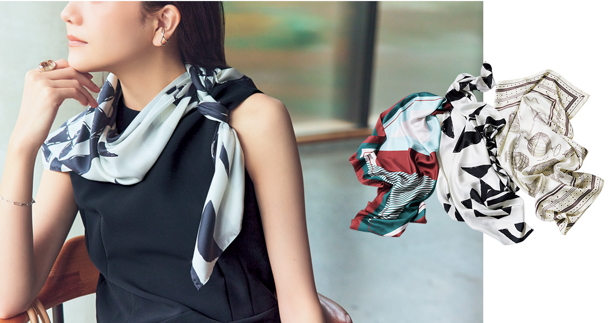 大人柄スカーフで上品なエッセンスを