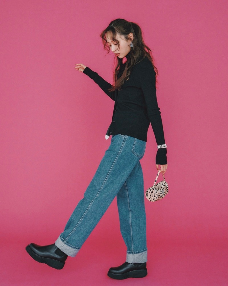 タートル¥12,000ベルト¥14,000(ともにバナナ・リパブリック)ポロニット¥25,300(フレッドペリー×ジーンズ ファクトリー╱ジーンズ ファクトリー 卸団地本店)デニムパンツ¥29,920(ETHOS╱HANA SHOWROOM)バッグ¥11,330(minitmute╱HANA KOREA)ブーツ¥29,700(ダイアナ╱ダイアナ銀座本店)ネックレス¥29,700(フォークバイエヌ╱UTSPR)ピアス¥4,950(ミミサンジュウサン╱サンポークリエイト)リング¥20,900(イットアトリエ╱フォーティーンショールーム)バングル¥19,800(フィリップオーディベール╱アンタイトル)