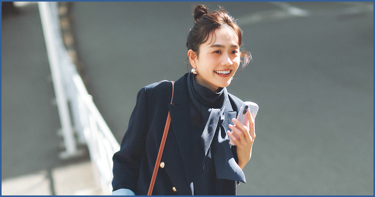 仕事にもすっかり慣れ、自分のスタイルも見えてきた今こそ見直したいのが、新卒時代から頼りにしてきた“紺ジャケット”。きちんと感はそのままに、着こなし次第でぐっと今っぽく、自分らしい一着へとアップデートできるんです。今回は、ジャケットを脱いだ瞬間もサマになるトップスと、その洗練見えする着こなし術をご紹介します!