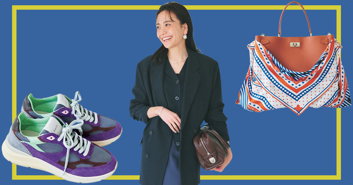 【30代の垢抜けベーシックカジュアル】紺ジャケ軸で取り入れるべきトレンド3選<バッグ、シューズetc.>
