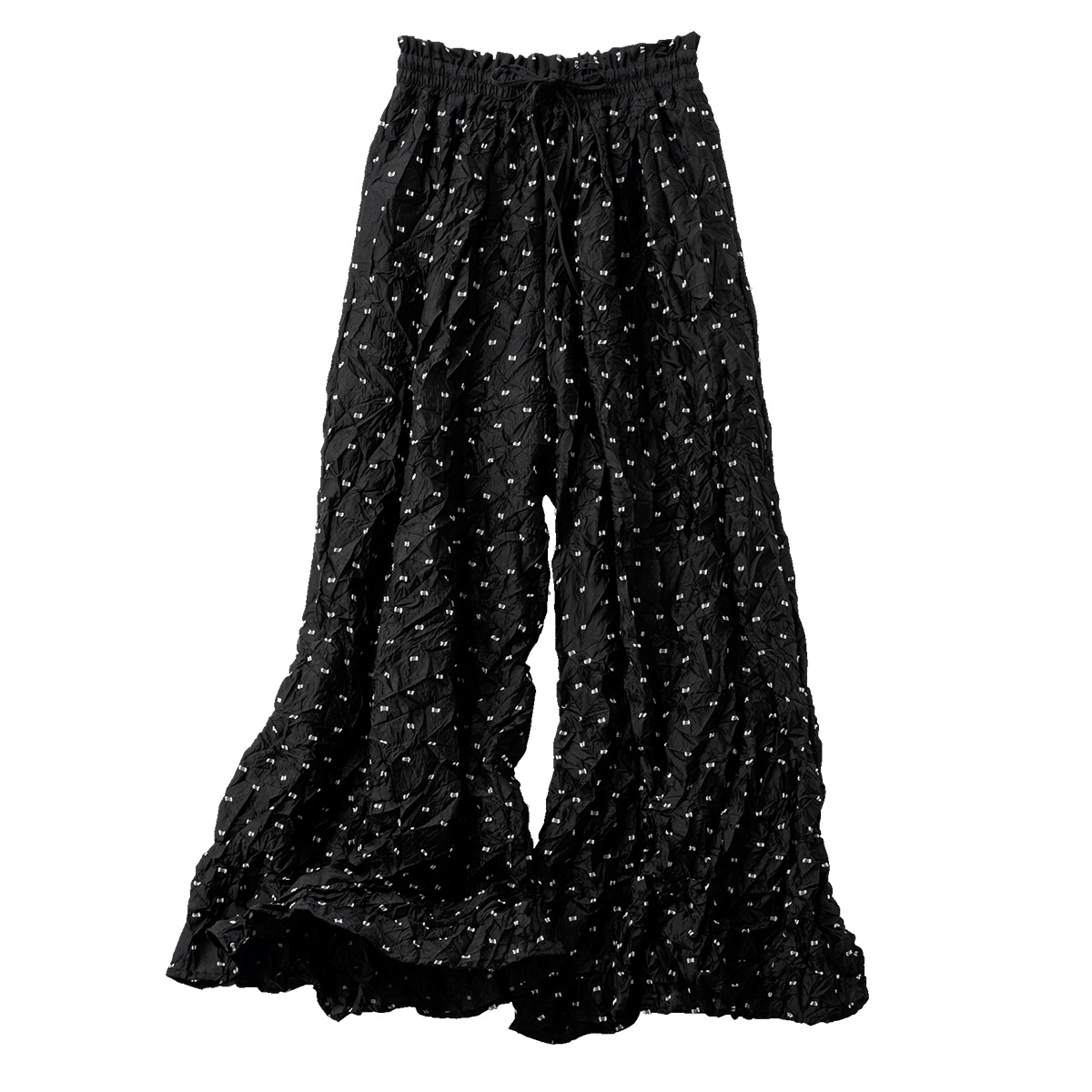 シンプルな通勤服に華を添える着映えボトムスは、イベントや仕事終わりに予定がある日に大活躍。ふんわりしたスカートライクなデザインでありながら、パンツなので甘くなりすぎない。パンツ¥35,000(シーニュ)