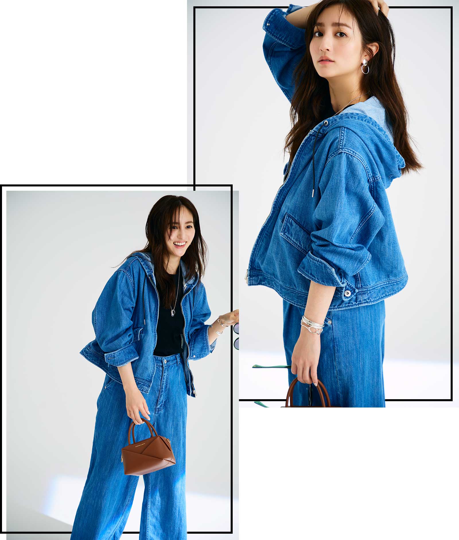 バランスが取りやすいショート丈×Aラインシルエットのブルゾンに、ゆるっとはけるストレートデニムのセットアップは、ヴィンテージライクな風合いも相まってこなれた印象に。柔らかく軽やかな着心地でシワになりにくいので、デイリー使いはもちろん移動が多い日も快適です。デニムブルゾン¥83,600ニット¥33,000デニムパンツ¥44,000(すべてタトラス/タトラス カスタマーセンター)バッグ¥10,900(CHARLES & KEITH/CHARLES & KEITH JAPAN)サングラス¥51,700(アイヴァン/アイヴァン 東京ギャラリー)イヤリング¥22,000バングル¥82,500ブレスレット¥66,000(すべてフォークバイエヌ/UTS PR)ネックレス¥21,890(エスシル)