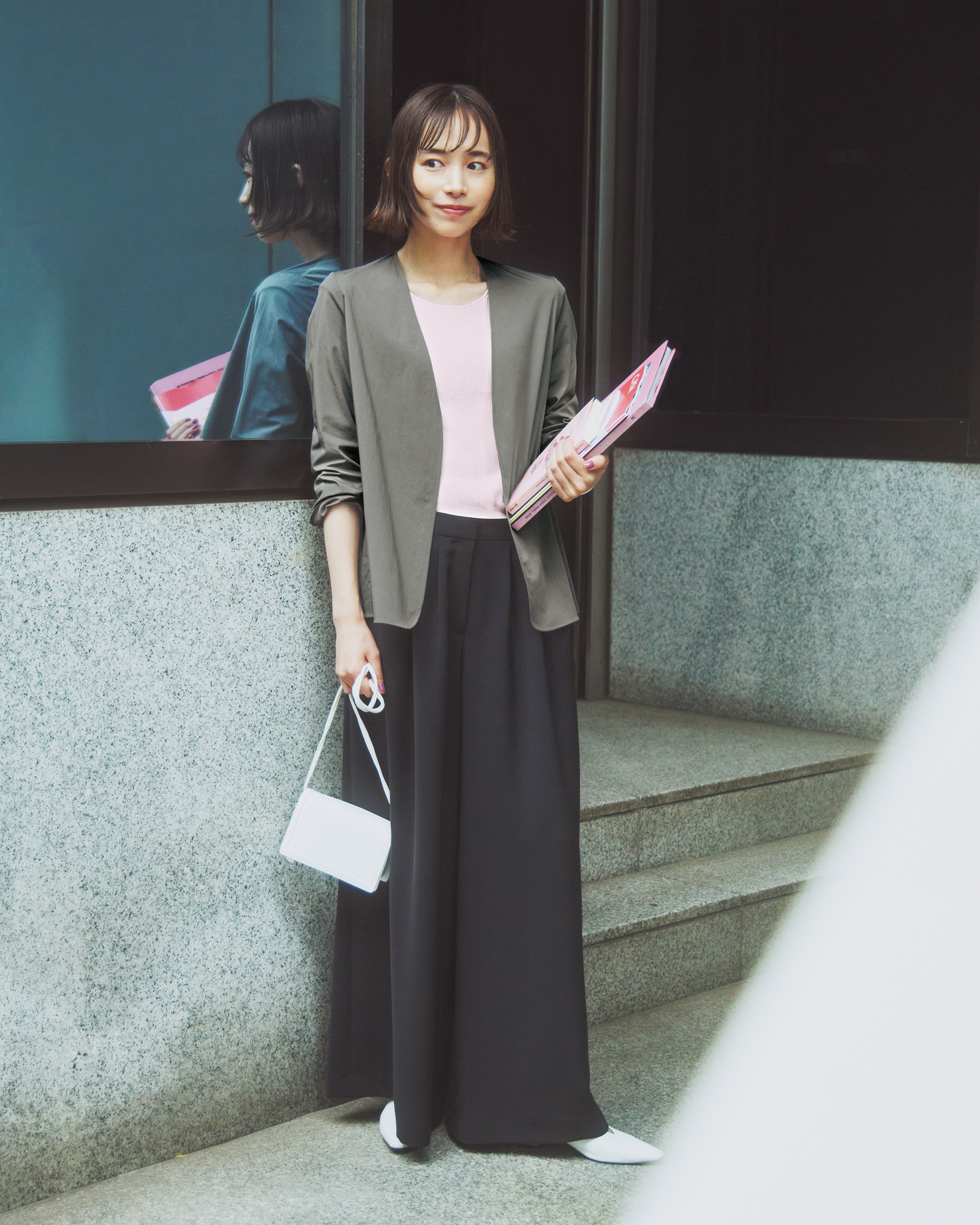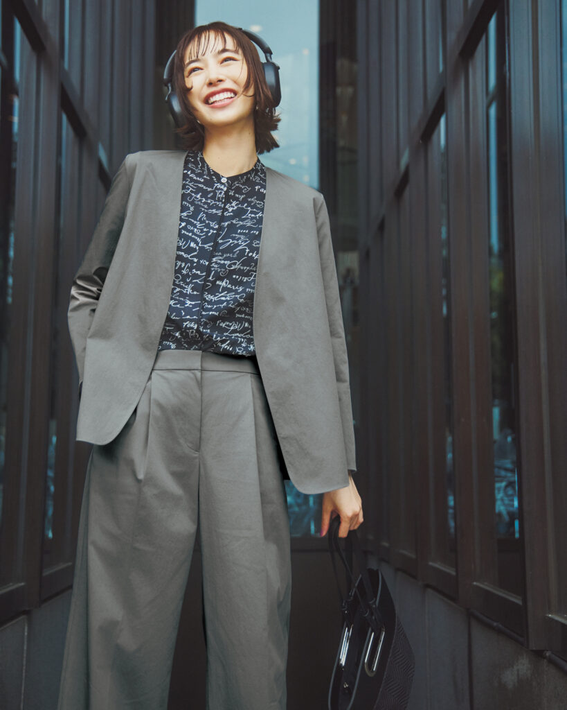 ジャケット※着回し ブラウス¥20,900 パンツ¥26,950 バッグ¥16,940(すべてICB/オンワード樫山 お客様相談室) その他スタイリスト私物