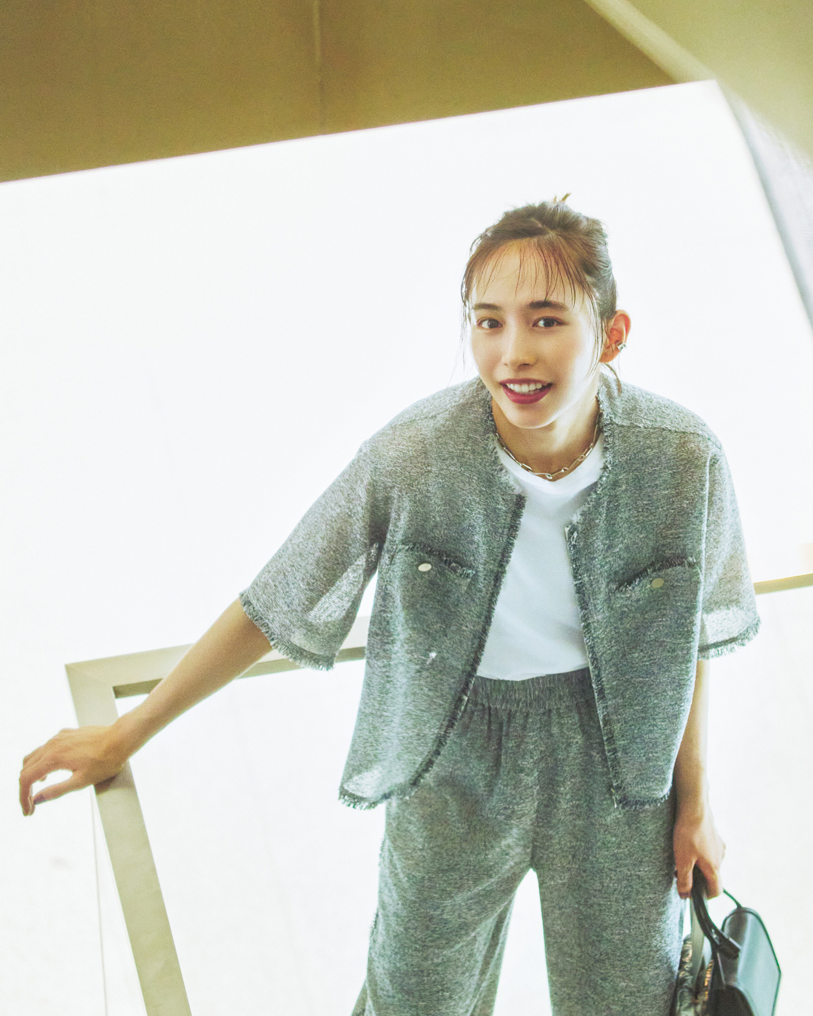 ジャケット¥34,980 ニット¥11,990 パンツ¥24,970 バッグ¥13,970(すべてICB/オンワード樫山 お客様相談室) その他スタイリスト私物