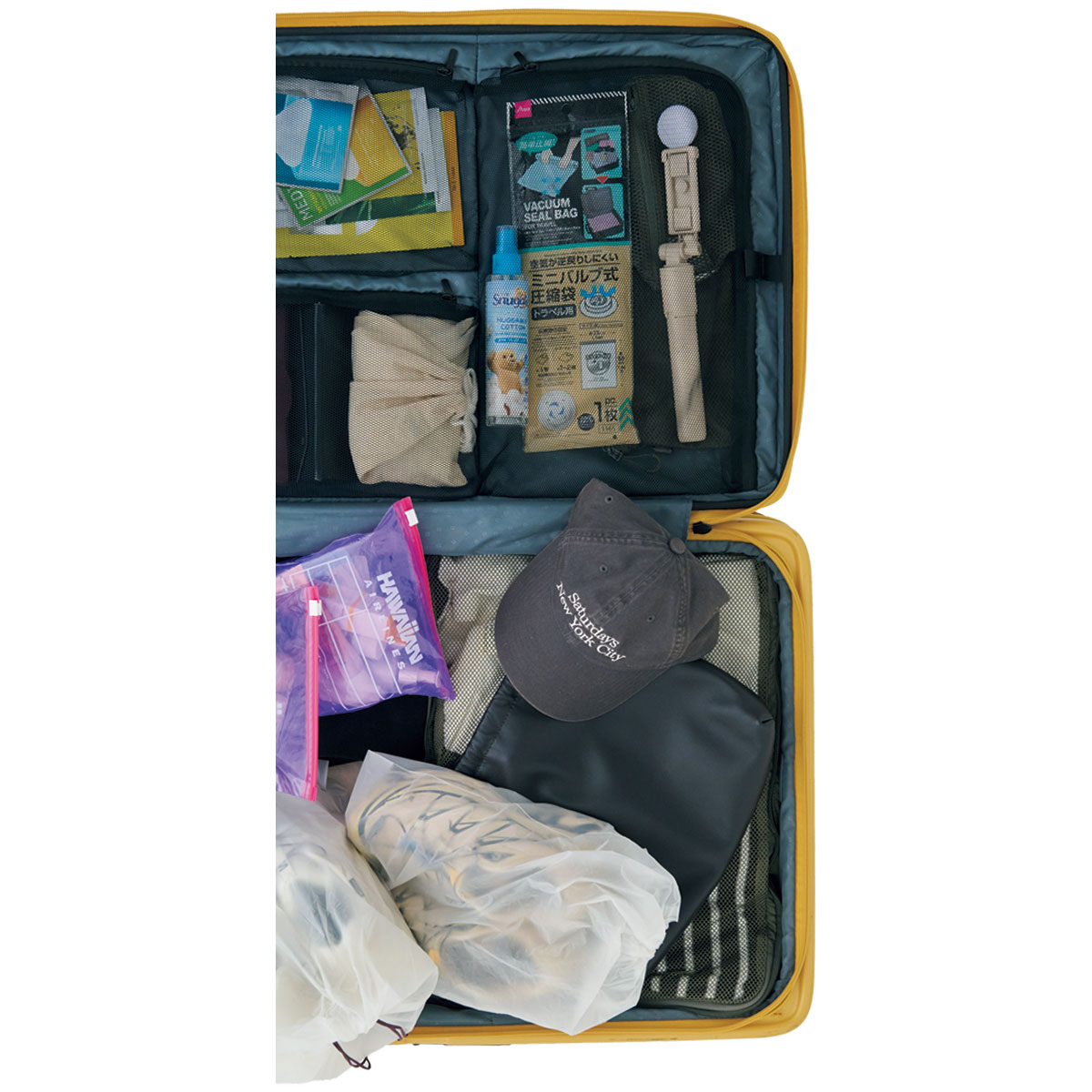 ニュアンスグレーがかわいくてゲットしたSaturdays NYCのキャップ。コーデの味変にも使えるから旅コーデの必須アイテム。