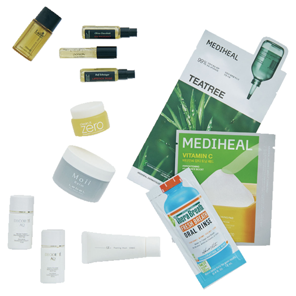 極力トランクの荷物を少なくしたいから、コスメ類はサンプルサイズで。彼も一緒に使えるように種類豊富に多めに持っていきます。