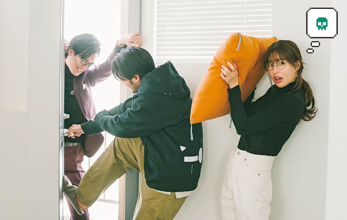 イブの朝、カゲさんの会社から出社しようとしたら、ドアの外に赤いスーツのサンタ…。乗り込んでこようとするキョウ、必死にドアを閉めるカゲさん。私の居場所、もしかして筒抜け!?追い払ったものの、外に出る勇気がなく欠勤。関係に白黒つけたくて、白黒コーデ。 メガネ¥41,000(オリバーピープルズ/ルックスオティカジャパン カスタマーサービス)クッション¥20,000(ルーマー/アルファ PR)