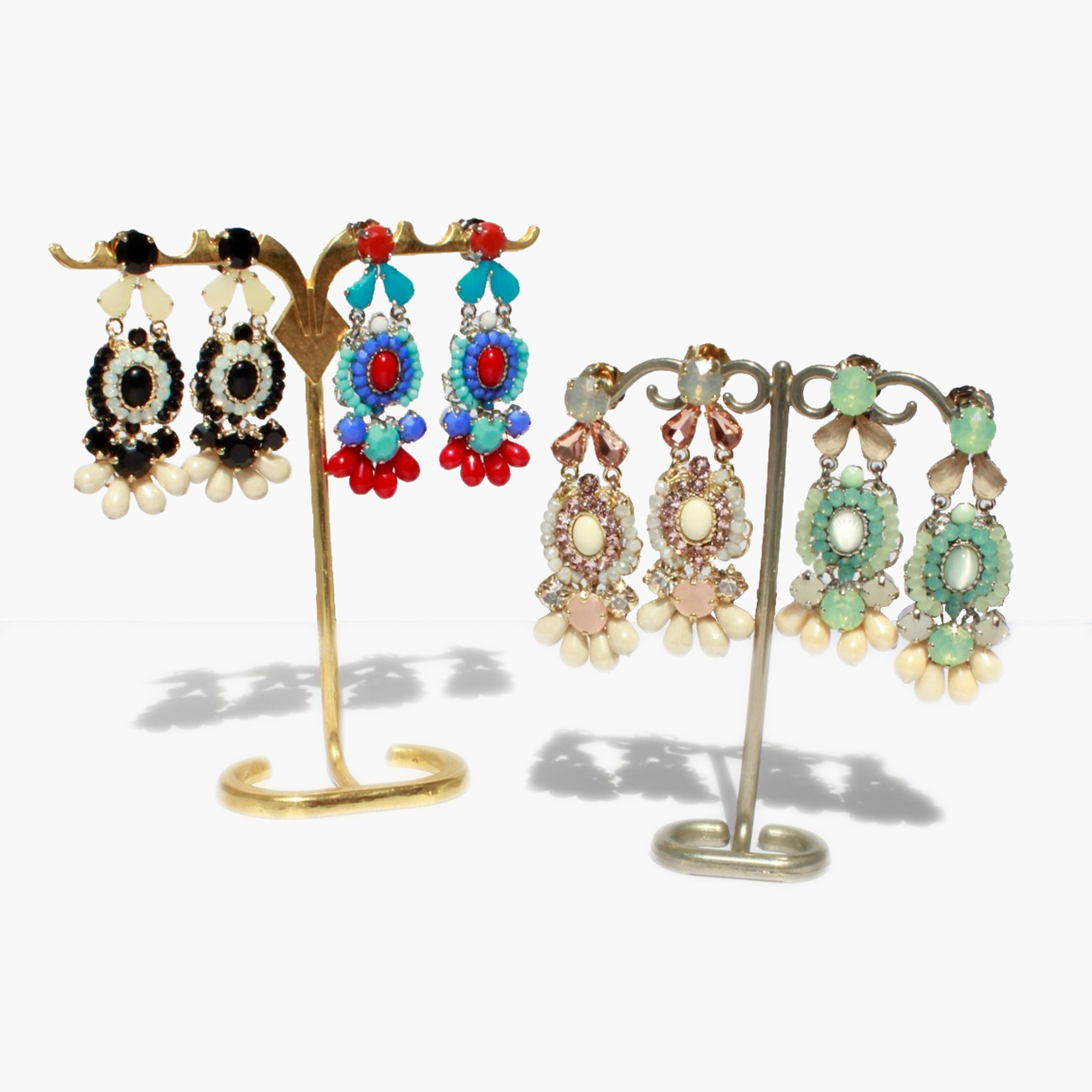 ABISTEから、夏のシンプルコーディネートを格上げしてくれる存在感抜群のピアスが登場。イタリアから買い付けたというビジューピアスは、トレンドのアンティーク感もあり今夏のスタイルにぴったりです。カラーバリエーションは4色。色違いで揃えれば、エスニック風にしたい日はブルー、ロマンティックにしたい日はピンク…とその日のコーディネートに合わせて選べます。
