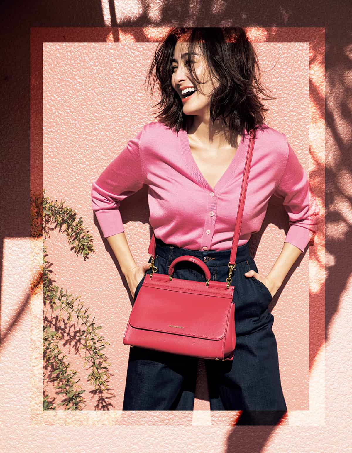 クラシックさとモダンさを併せ持つシンプルなフォルムは斜めがけしてもしっくり収まりがいい。新色のフューシャはハッピーオーラも満載。大人可愛いアクセントにぴったりです。 バッグ「シシリー ソフト(スモール)」[ショルダーストラップ取り外し可能]〈W27×H20.5×D10.5cm〉¥219,000カーディガン¥111,000デニムパンツ¥107,000(2点予定価格)(すべてドルチェ&ガッバーナ/ドルチェ&ガッバーナ ジャパン)