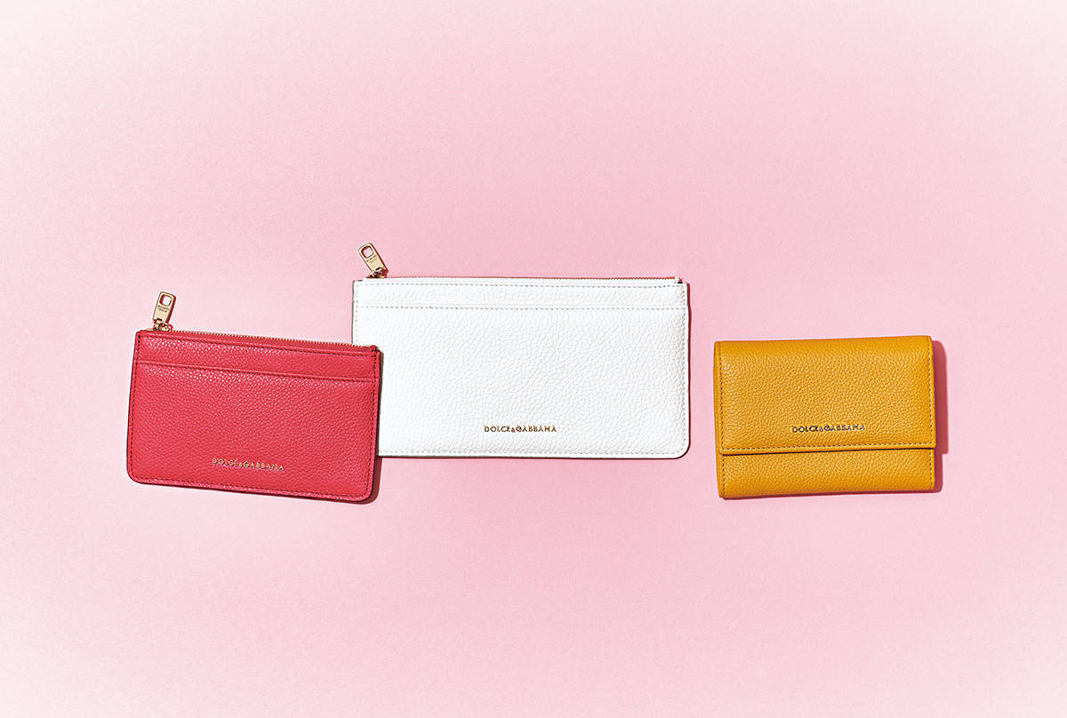 小物類も上質なカーフスキンを使用。湿度を加えて柔らかな質感に仕上げてあるので手に取ったときのしっとり感が心地よい。鮮やかなキレイ色は小物ならさらに取り入れやすい。 カードケース(大)〈W18.5×H9.7×D1.5cm〉¥39,000カードケース(小)〈W11×H9×D1cm〉¥31,000 3つ折り財布〈W12×H9cm〉¥57,000(すべてドルチェ&ガッバーナ/ドルチェ&ガッバーナ ジャパン)