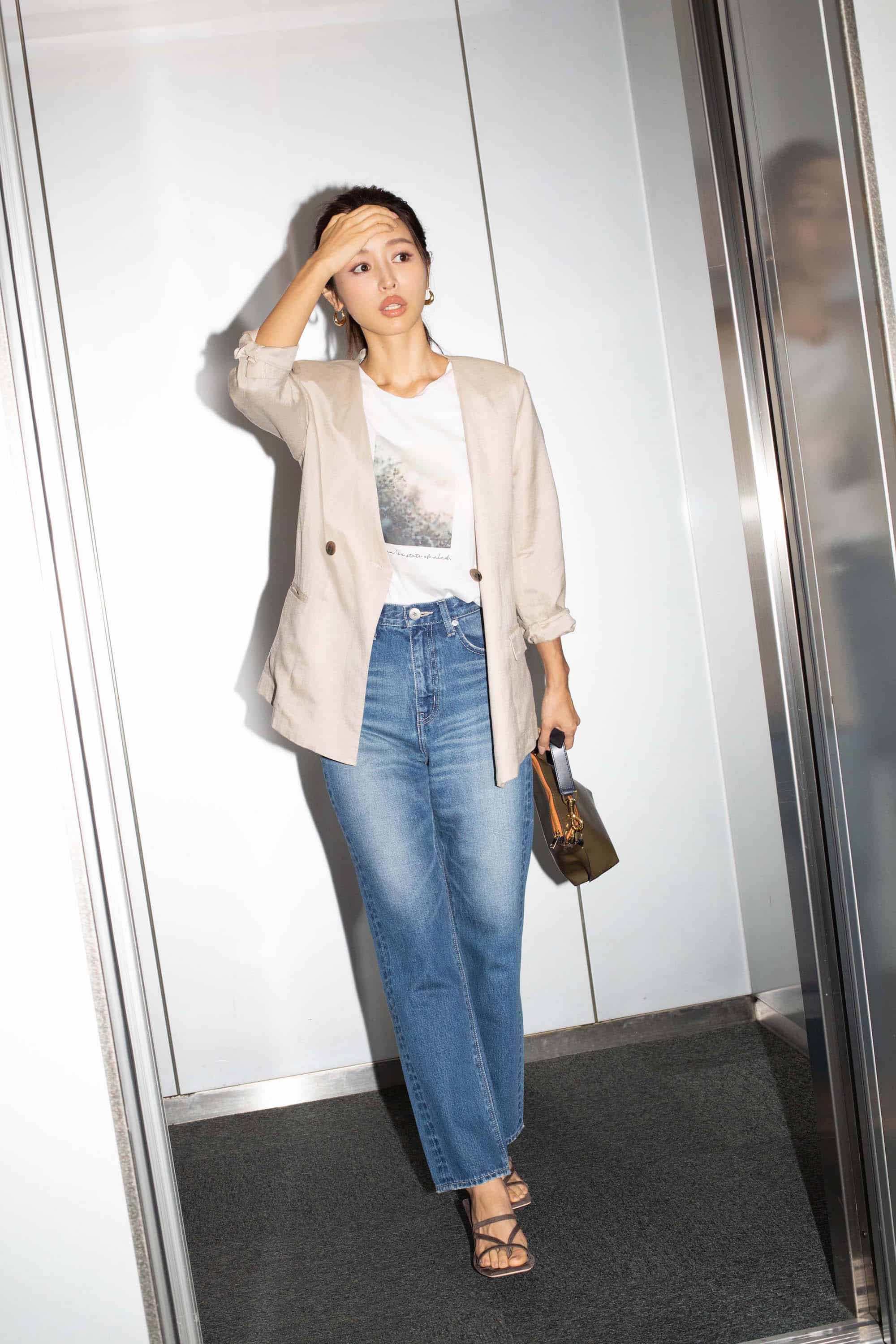 ジャケット¥9,400(MURUA) フォトT¥1,990(MANGO/LOCONDO) デニムパンツ¥10,900(GYDA) ピアス¥2500(Mignonjour/Room403 表参道本店)サンダル¥13,800(ALEXIA STAM) お問合わせ先:ALEXIA STAM https://alexiastam.com /GYDA 03-3359-2527/MURUA 03-5447-6543/Room403 表参道本店 03-6452-6707/LOCONDO www.locondo.jp