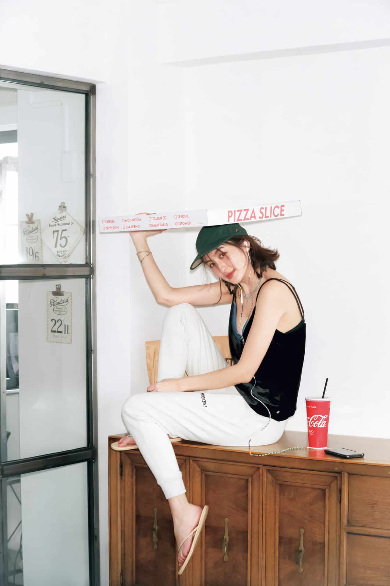 ラフすぎないスウェットパンツはさすがのデザイン。ベロアのキャミソールで肌見せをヘルシーかつ上品に。ショールームには経験豊富なスタッフがいて、コーディネートのアイデアにも幅広く応えてくれます。スウェットパンツ〈THIRD MAGAZINE〉キャミソール〈ARCH THE〉イヤホン¥13,000〈LE POM POM〉(すべてTHIRD MAGAZINE)ブラトップ¥7,200(スキンアウェア)サンダル¥12,000(ティーキーズ/ロンハーマン)シルバーネックレス¥22,000(ココシュニック)ターコイズネックレス¥15,750〈チビジュエルズ〉バングル¥11,880〈ソコ〉(すべてZUTTOHOLIC)