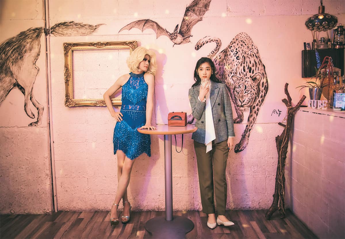 イベント終了後、マコトのバーで打ち上げをすることに。HIROKIさんもマコトも私の大好きな二人だから、早急に引き合わせられて嬉しい! 女性みたいにキレイなマコトと、男性みたいにカッコいいHIROKIさんと、絶賛お一人さま満喫中の私。不思議だけど、それが自由で、面白い。これからもこうやって、大好きな人たちと、素敵な時間を共有していきたいな。何が正解かわからなくなる日もあるけど…とりあえず、自分の気持ちに正直に、私の思う「幸せ」をつかむって決めた! バッグ¥44,000(FURLA/FURLA JAPAN)【HIROKI】ブルゾン ¥65,000シャツ ¥23,000パンツ ¥45,000シューズ ¥82,000(すべてGalaabenD/ガラアーベント)【麗麗】スタイリスト私物