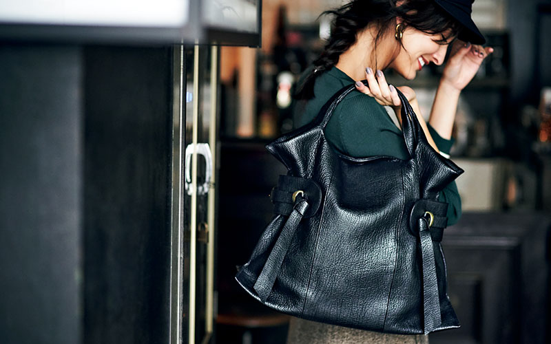 しなやかで軽いレザーだから大きなフォルムでも女らしさが漂う