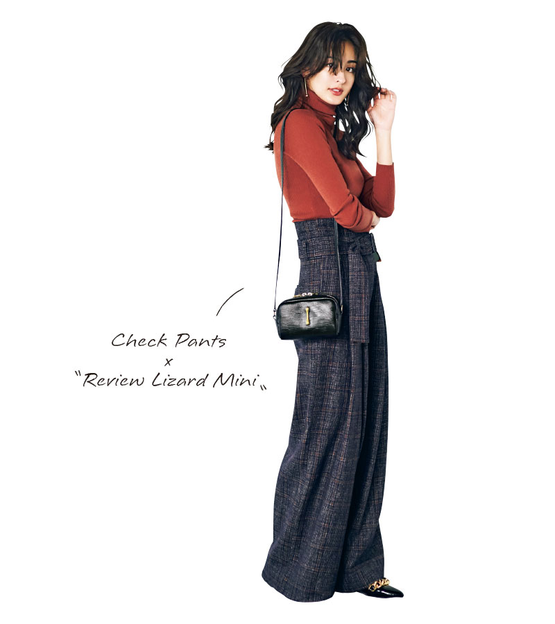 「レビュー リザード・ミニ」バッグ[H11.5×W17×D8cm]※ブランドオフィシャル通販と9/14 OPEN予定のZOZO TOWN店のみで販売されるWEB限定商品。¥18,000(トフ アンド ロードストーン/T&L)ニット¥14,000〈アルアバイル〉パンツ¥68,000〈メゾン・フラヌール・パリ〉(ともにアルアバイル)シューズ¥28,000(エストネーション/エストネーション)ピアス¥20,300(シャーロット ルベック/プリファー シップス NEWoMAN新宿店)
