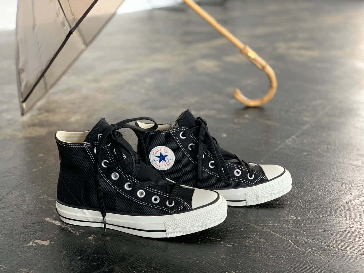 雨の日も多いこの季節、気になるのは足元問題。ラバーのバレエシューズやドクターマーチンなど選択肢も増えた最近ですがいつもの相棒、コンバースのスニーカーで防水なら嬉しいですよね!ちょっとパラつく日や、本降りだけどいつものスタイルを崩したくない、そんな気持ちに寄り添ってくれるシューズを発見!