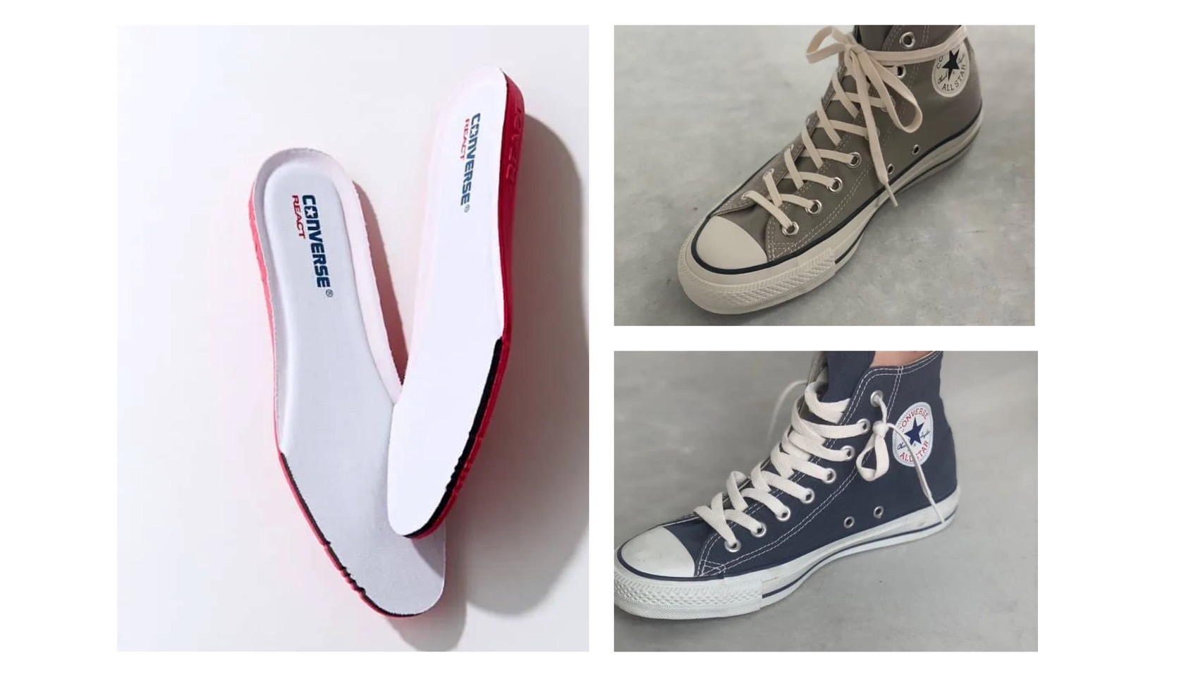 オールスター誕生100周年を記念して作られたALL STAR 100シリーズに搭載されているリアクト カップ インソールは、従来のコンバースに比べて、軽さとクッション性を叶えてくれるので長時間歩く予定の日にもぴったり。日本でしか手に入らないモデルです。リアクト カップ インソール¥1,760(コンバースインフォメーションセンター)※コンバースオフィシャルオンラインショップ限定発売。ALL STAR 100、JACK PURCELL RHシリーズ、White atelier BY CONVERSE限定ALL STAR COLORS Rに対応。