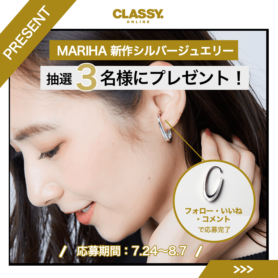 なんと今回、MARIHAの新作「Mystic Orbs イヤーカフ」を3名様にプレゼント!8月7日に発売の最旬アイテムをゲットできるチャンスです。CLASSY.の公式インスタグラムにて簡単に応募できるので、ぜひチェックしてみて。