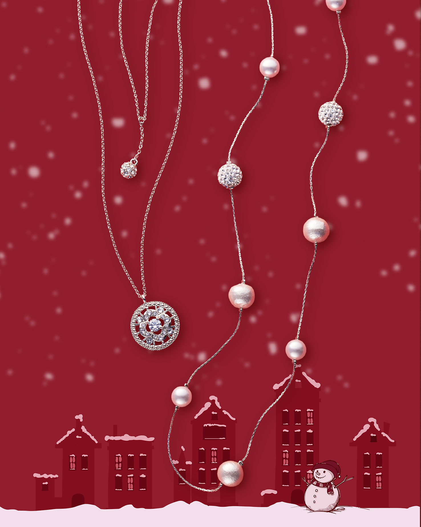 プラス ヴァンドームから、ホワイトクリスマスに降る雪をイメージしたネックレスセットが登場。プチサイズのパヴェボールが揺れるシンプルなYラインペンダント、四つ葉のクローバーを描いたメダリオンペンダント、クレイパヴェ。コットンパール、プラスティックパールをつなげたホワイトロングネックレスの3点セット。 ★Snowing-silver ¥15,000