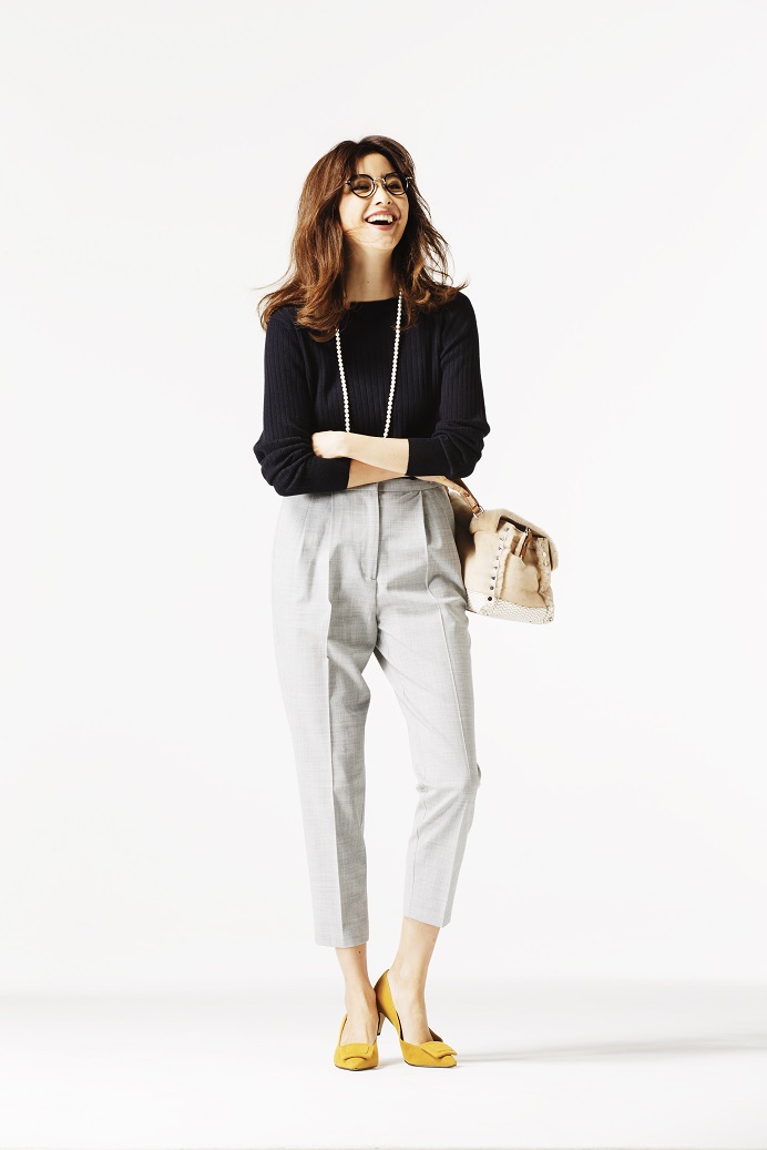 ニット¥21,000(ハウント/ハウント代官山/ゲストリスト)パンツ¥18,000(デミルクス ビームス/デミルクス ビームス 新宿)バッグ¥90,000(ザネラート/アマン)パンプス¥18,000(オデット エ オディール/オデット エ オディール 新宿店)メガネ¥42,000(オリバーピープルズ/オリバーピープルズ 東京ギャラリー)ネックレス¥11,973(アビステ)