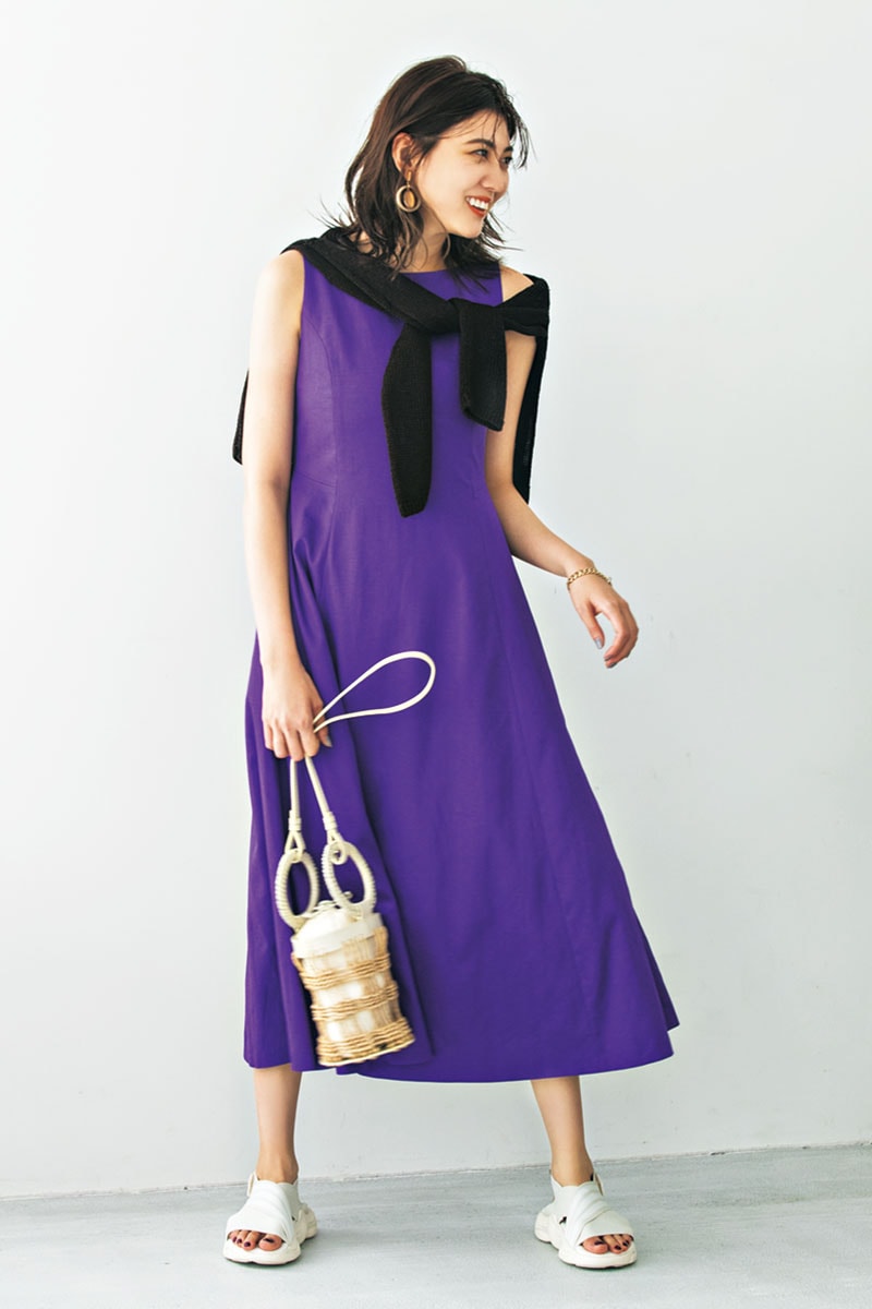 フェミニンなAラインワンピをスポーティな足元で脱コンサバに!