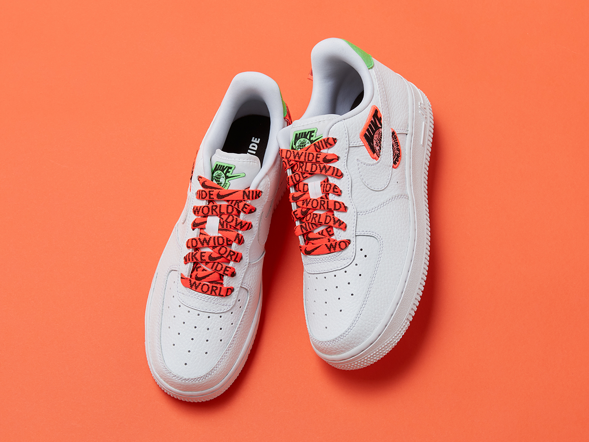 1足目は、注目の“ワールドワイド パック”コレクションから。ロゴ入りのシューレースやネオンカラーのポイント使いなど、シンプルな白ベースながら個性を放つ、コーデの主役になれる存在感です。