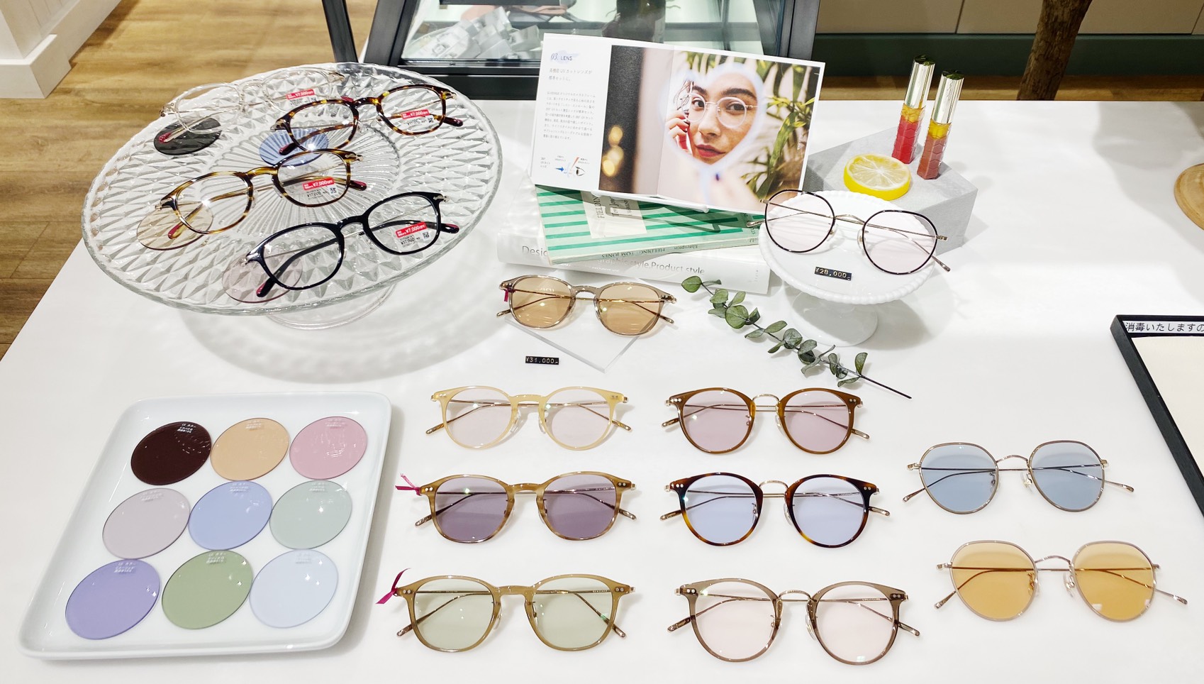 イエベ・ブルベでおなじみの、黄みがかっている「イエローベース」と、青みがかっていて赤みが強い「ブルーベース」のベースカラー診断を、店舗にて簡易的に行い、100種類以上のフレームの中から自分のベースカラーや顔の形に似合う特別な1本を見つけることができます。