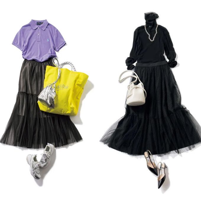 【黒チュールスカート】透け感で重くならない!オフィスもOKのおすすめコーデ8選