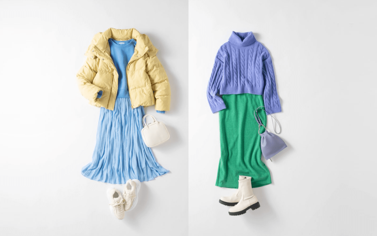 ユニクロとGUの服だけで完成!「真冬のカラーMIXコーデ」5選【スカート】