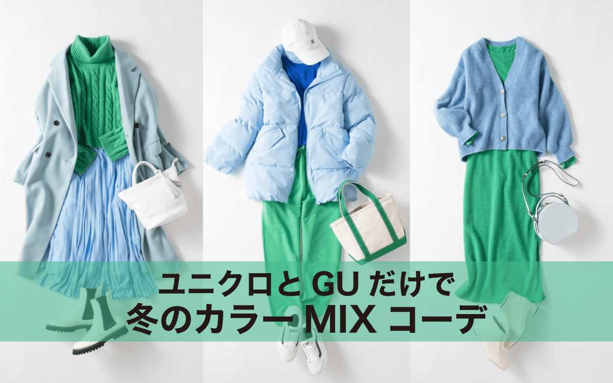 ユニクロとGUの服だけで完成!「冬の華やかカラーコーデ」3つ【グリーン&ブルーMIX編】