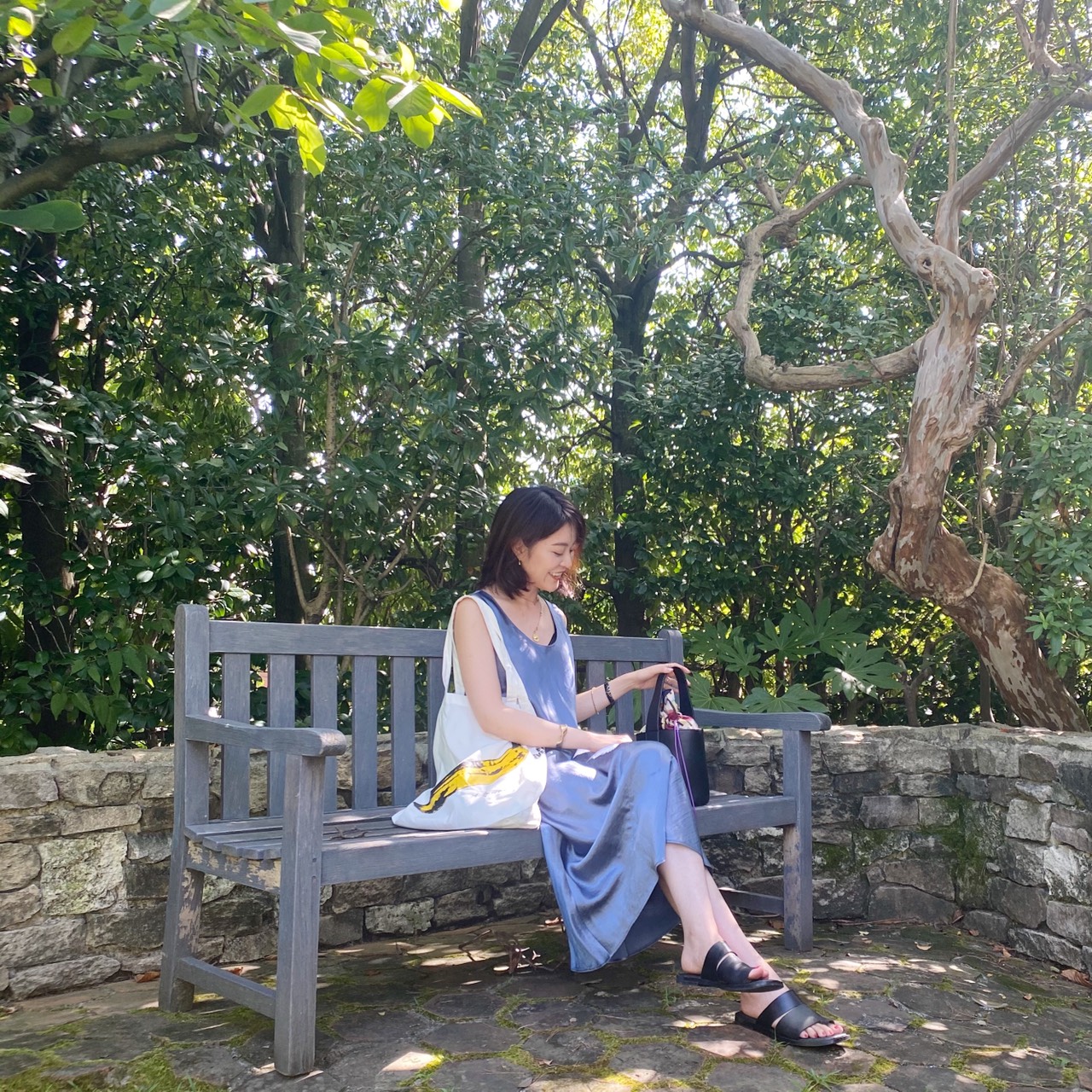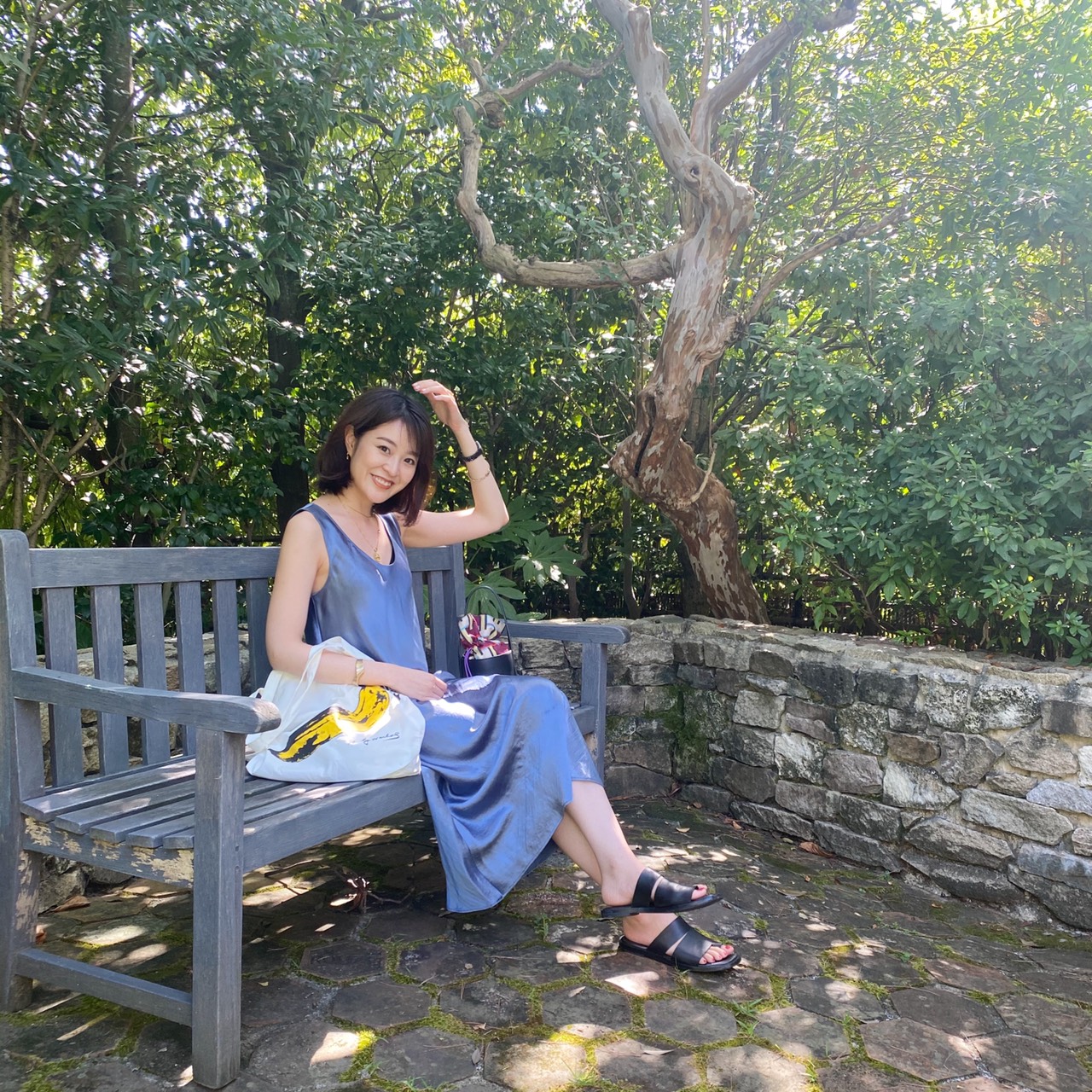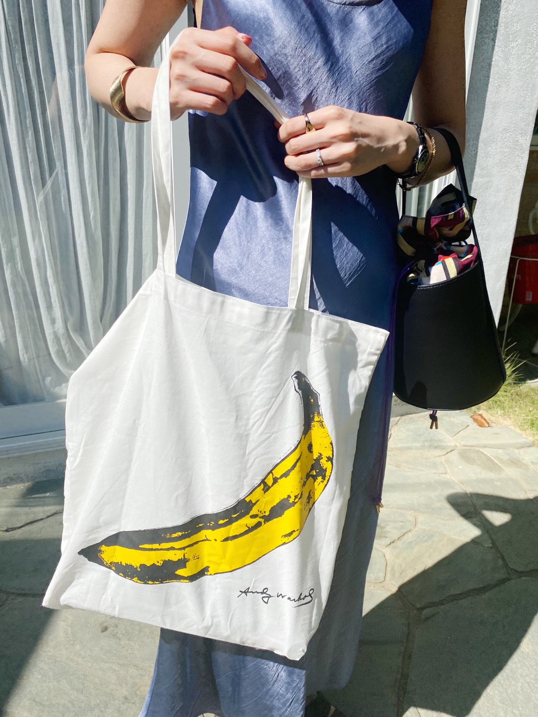 今年の夏は割とシンプルなコーデが気分なので、バナナの絵柄がユニークなエコバッグでコーデを外しています。