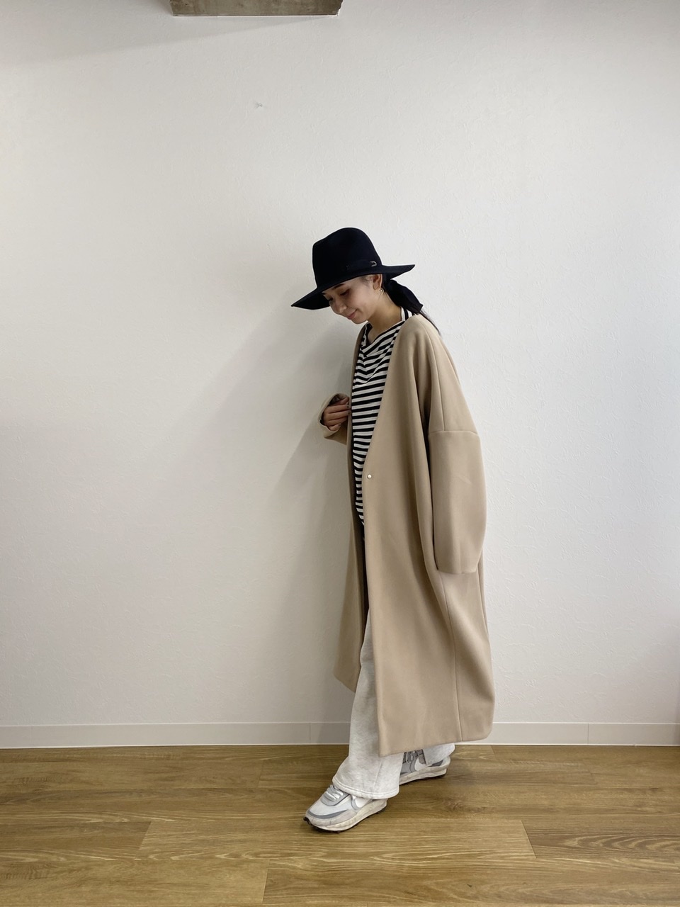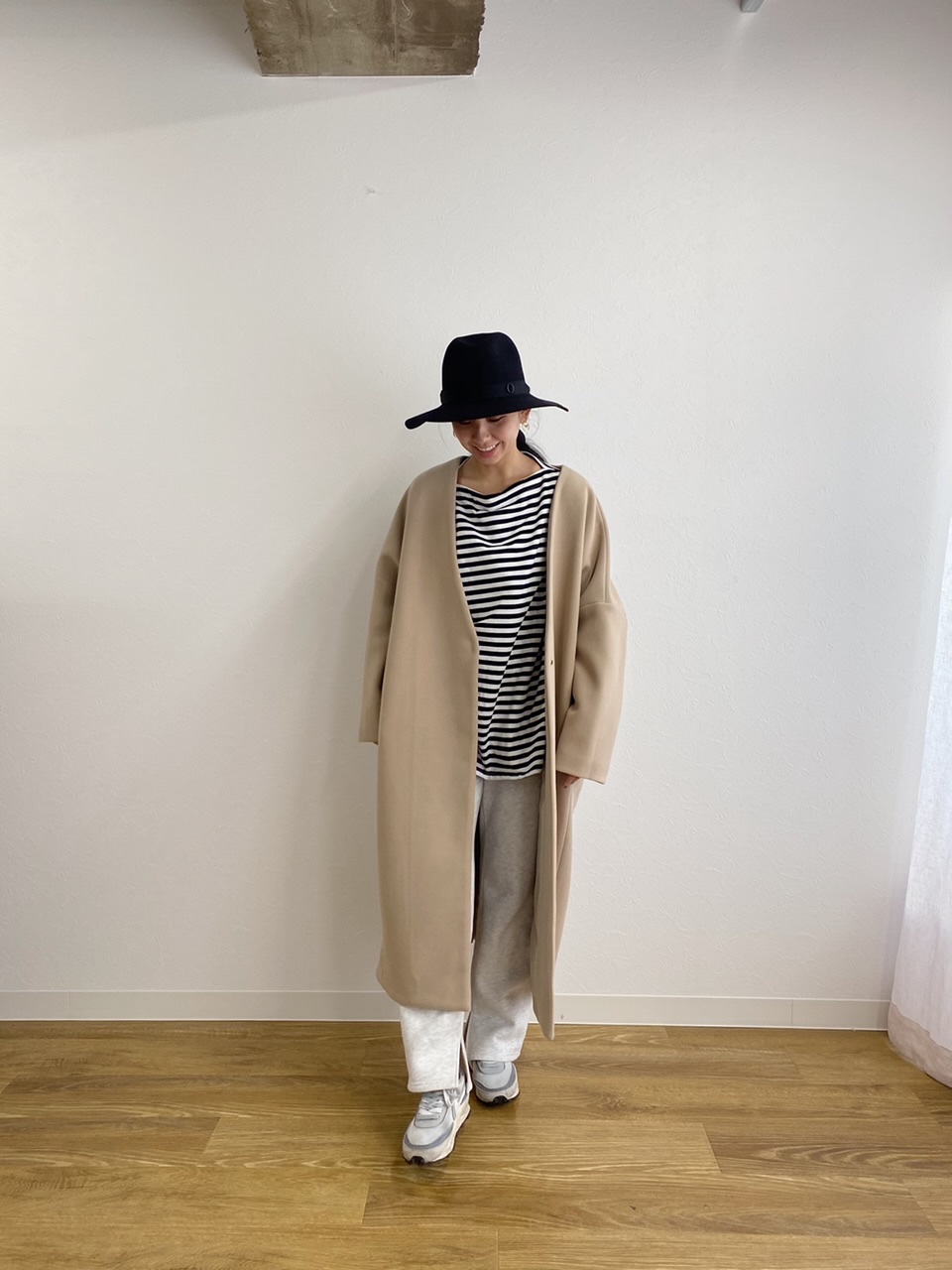 meriというブランドのもので、ドロップシルエットのノーカラーコートです。