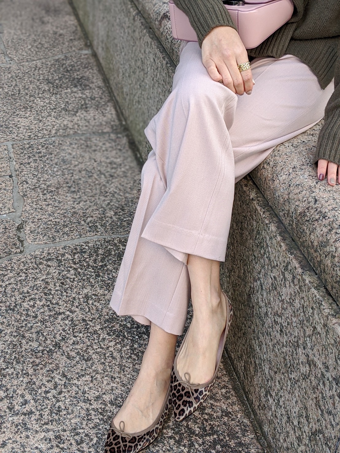 コーディネートの差しアイテムに、レオパード柄のフラットシューズを取り入れました!柄アイテムが入ると全体のメリハリが付きますね。