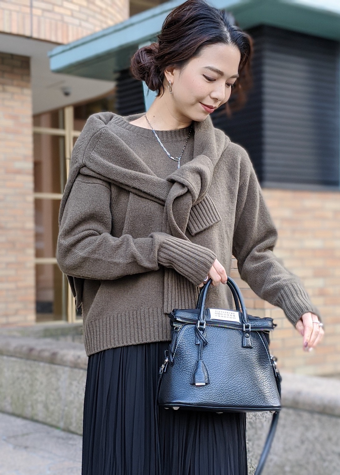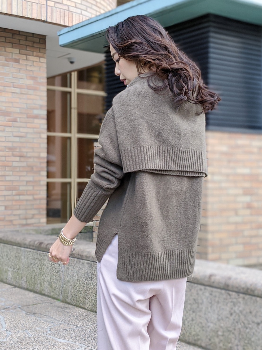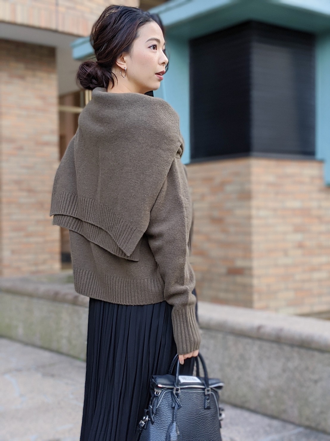 ベーシックなニットはなるべく沢山着れるものを毎年買い足して、自分にぴったりの1枚を見つけたいですよね♪同素材ニットの肩がけは、コーディネートを格上げして見せてくれるのでオススメですよ♪