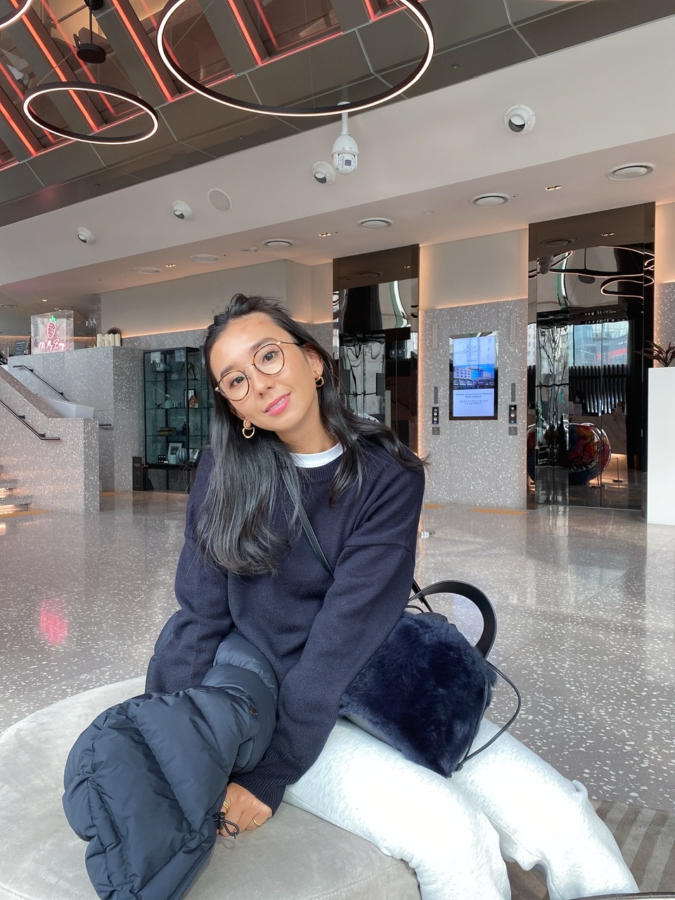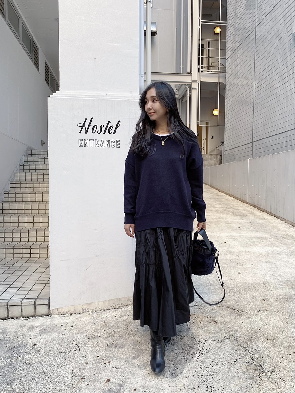 このニットの好きなところがシルエットが綺麗&スタイリングがしやすいんです!それこそデザインはシンプルですが、ゆったりめで丸みのある立体的なシルエットなので着るとサマになるニットです。
